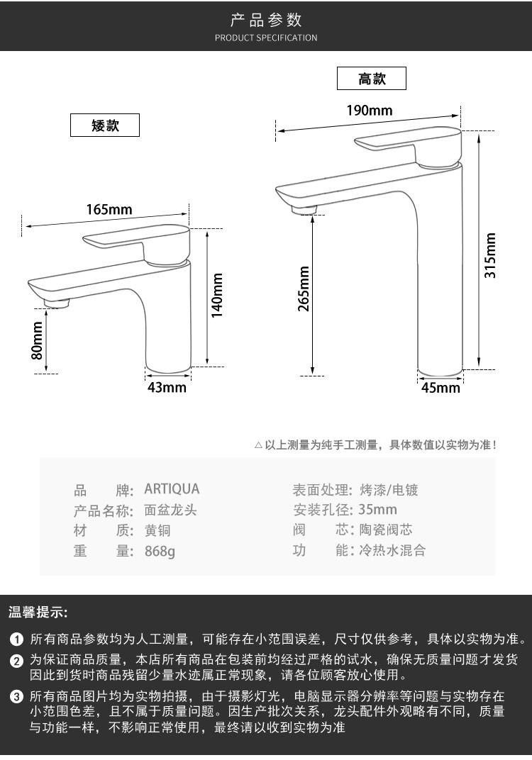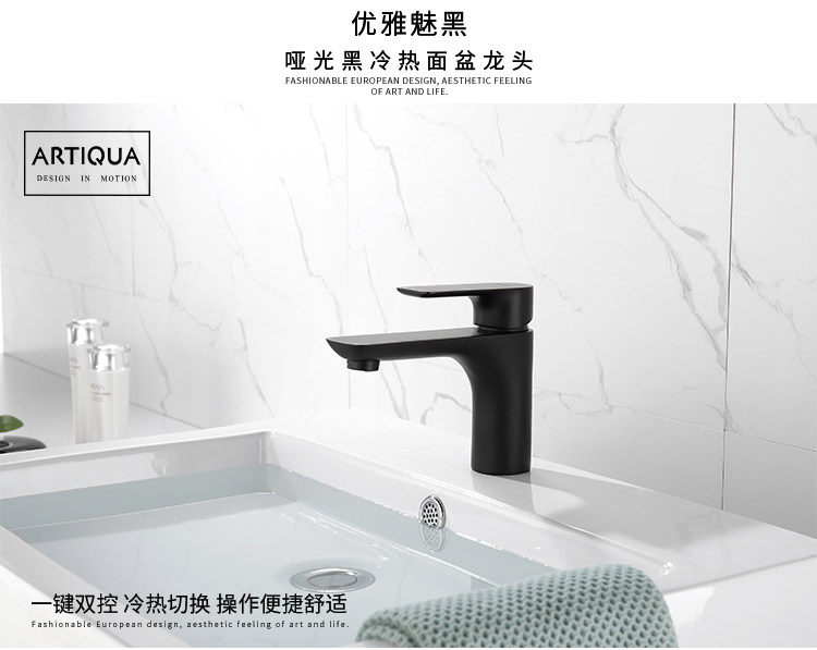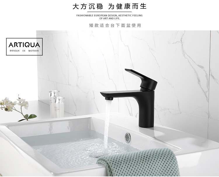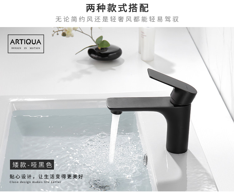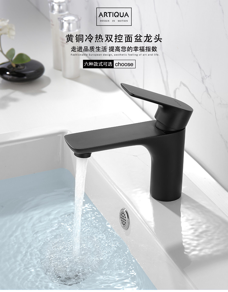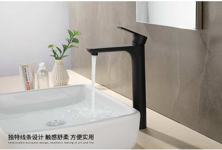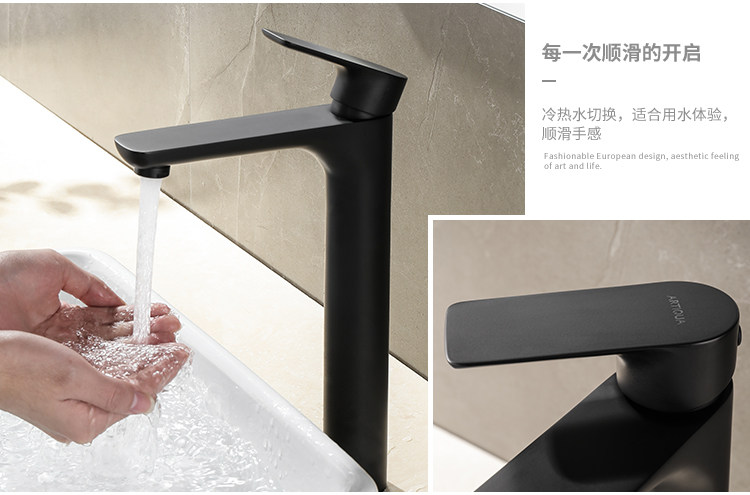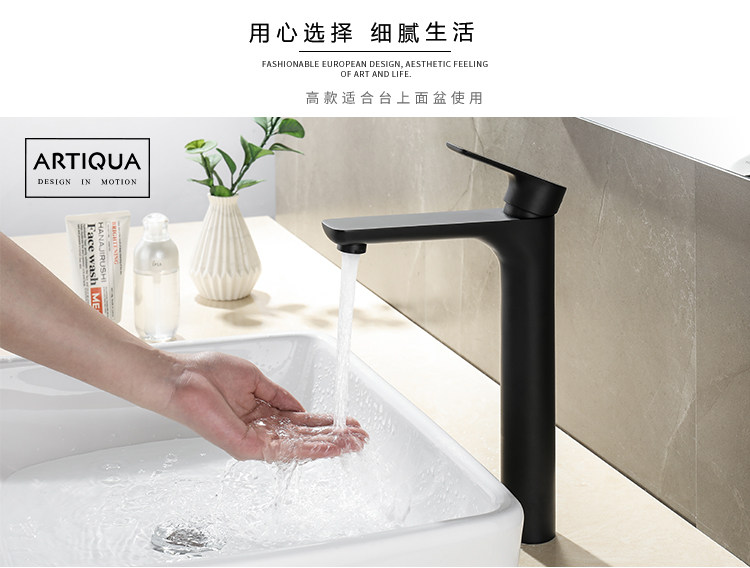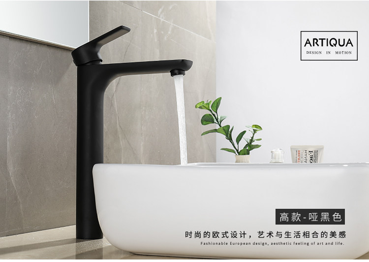 Artiqua All-Copper Basin Faucet Hot and Cold Washbasin Faucet Elevated Countertop Basin Faucet Matte Black