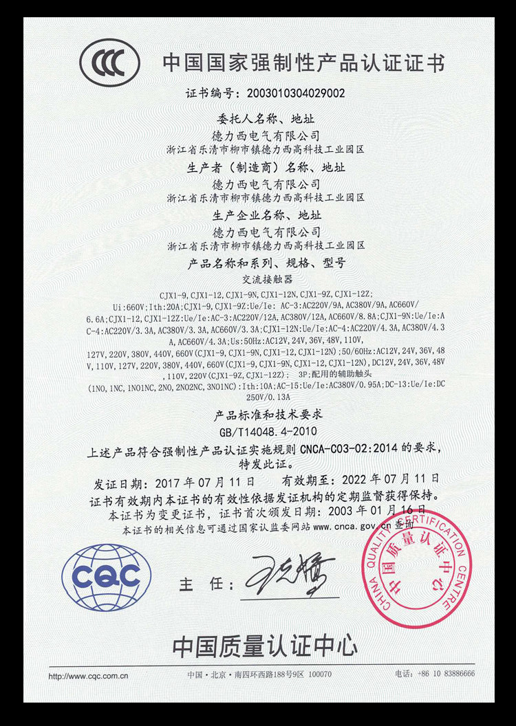 Color Classification CJX1-9/22Z,CJX1-12/22Z,CJX1-16/22Z,CJX1-22/22Z