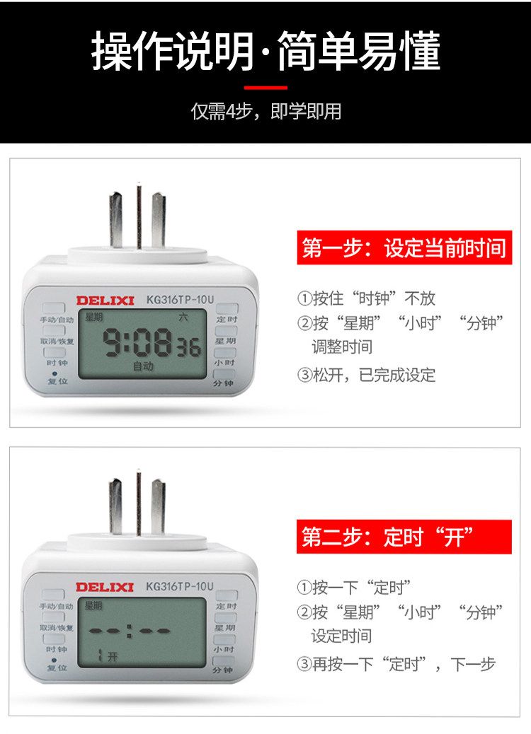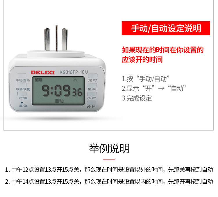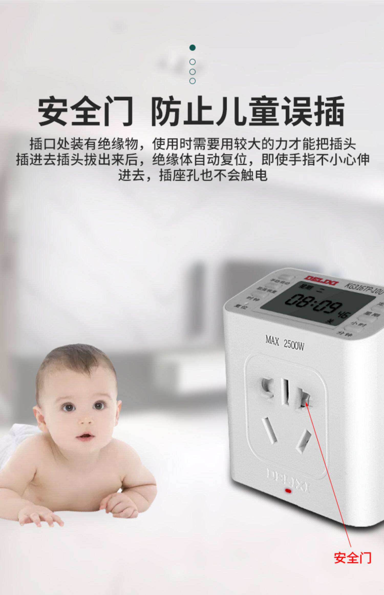 Delixi Time Controller Timer Socket for Home Use, Smart 220V Power Automatic Power-Off Timer Socket Plug