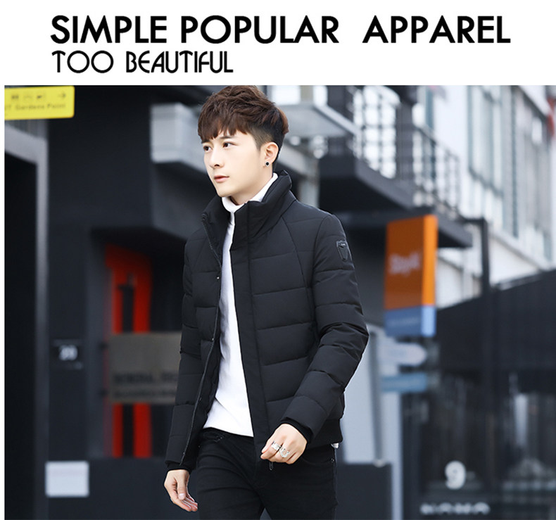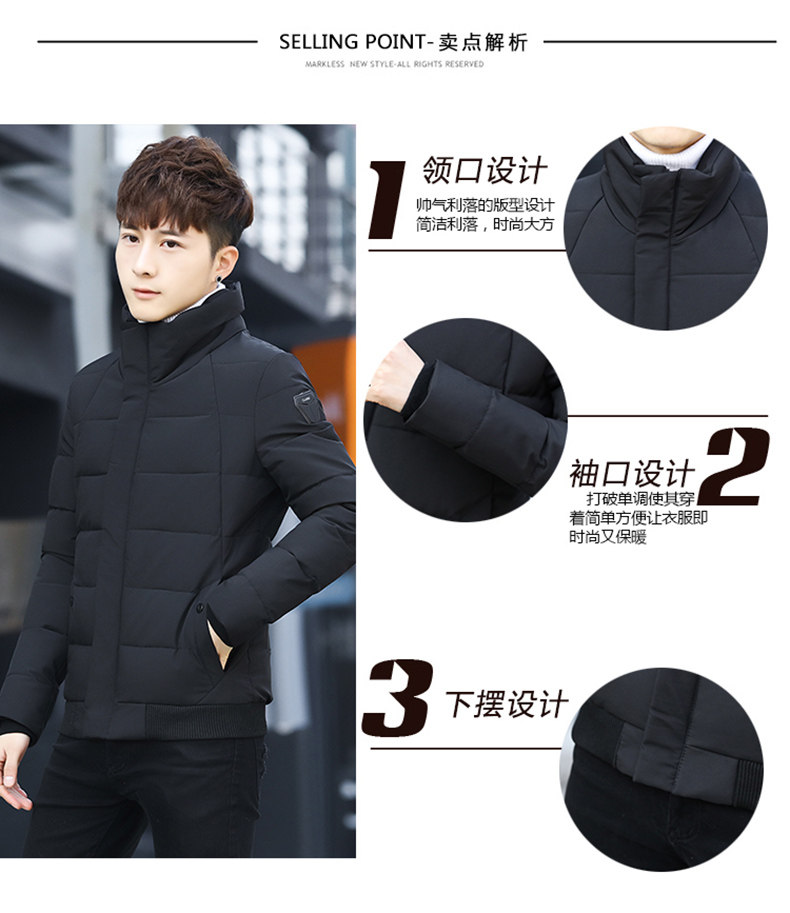 Autumn and Winter Stand-Up Collar Cotton Coat for Men, Middle School Student Winter Jacket, Trendy down Cotton Jacket, Men's Warm Autumn Clothing