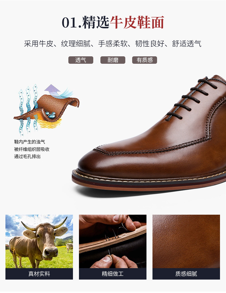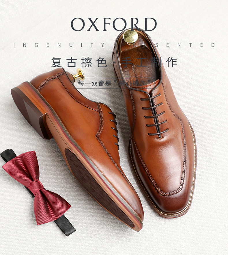 Desai British business formal casual Korean version Oxford men's leather shoes men's lace-up genuine leather breathable handmade men's shoes trendy