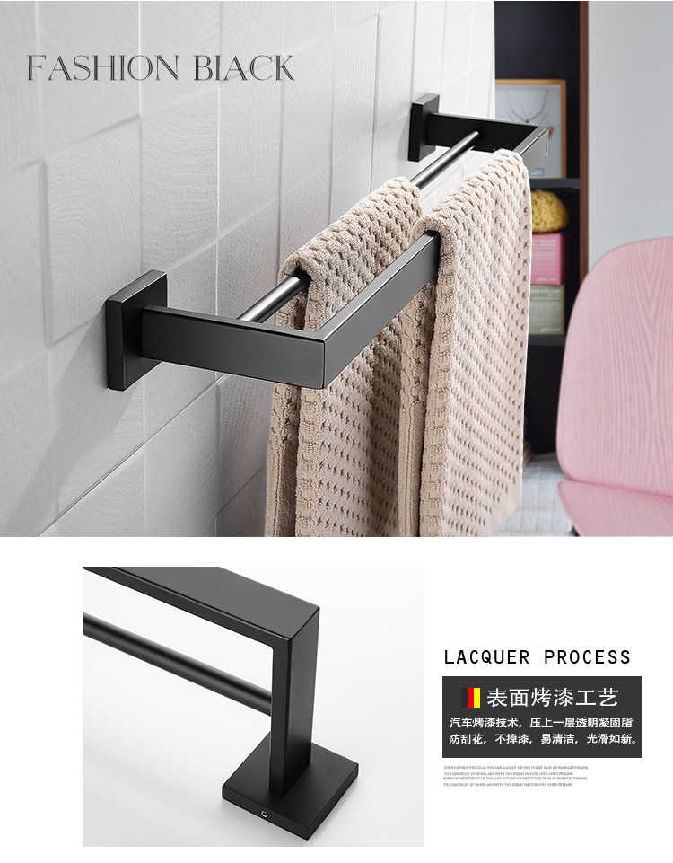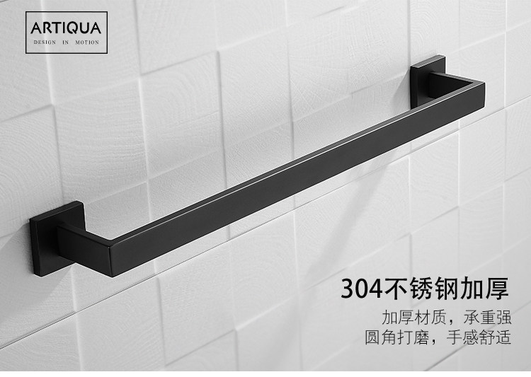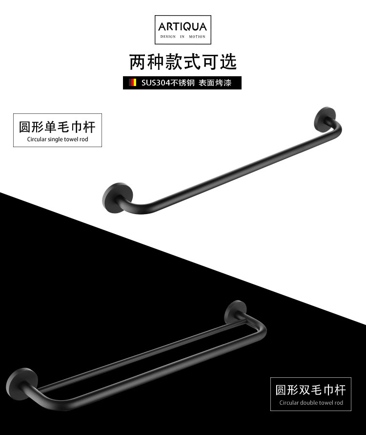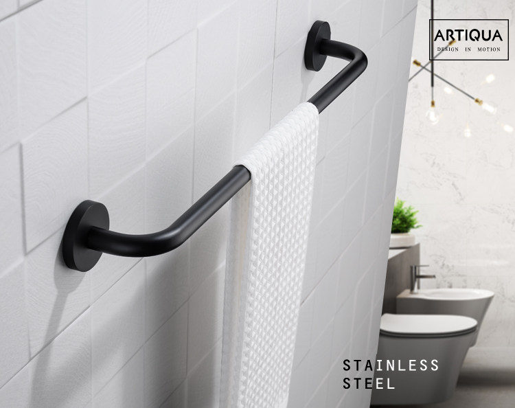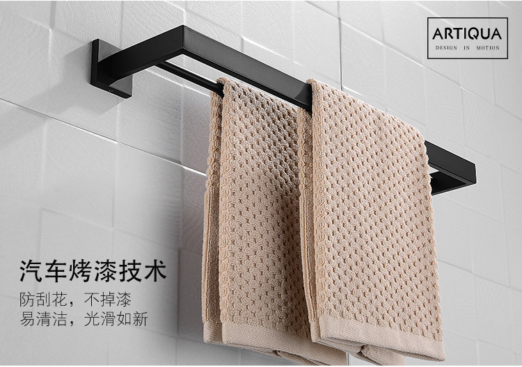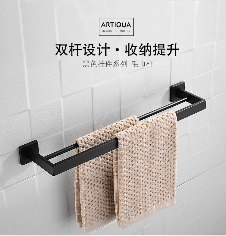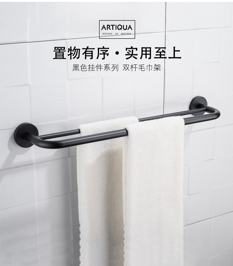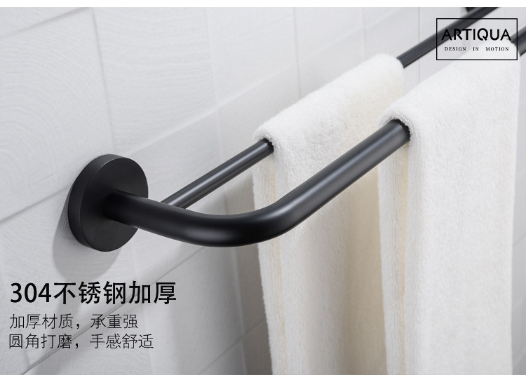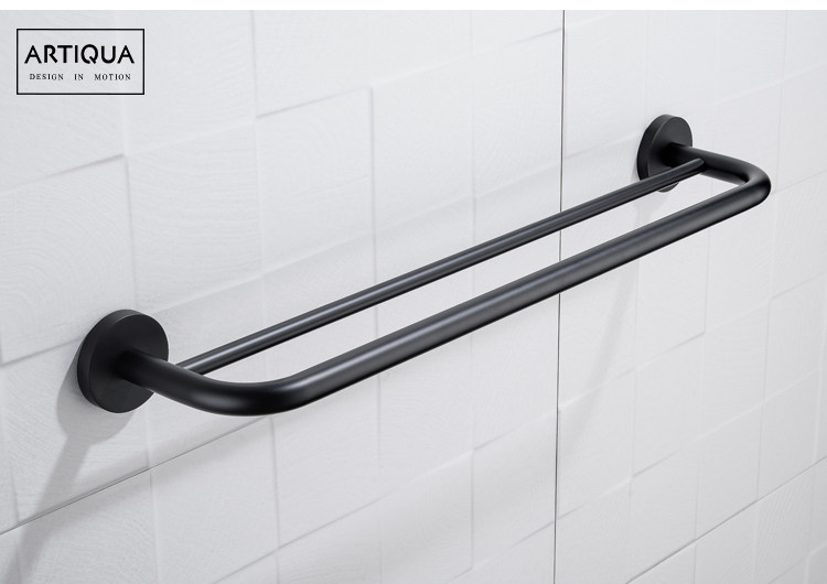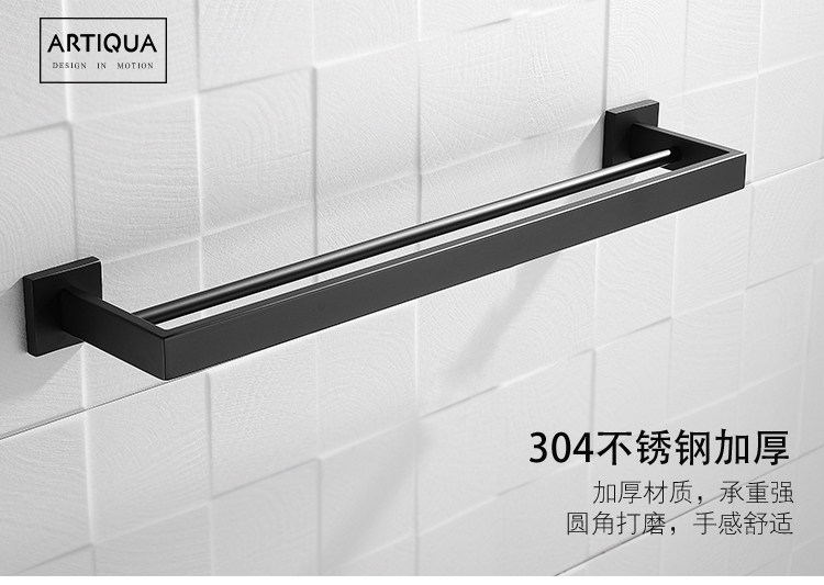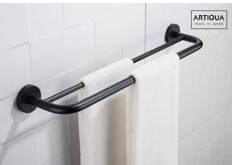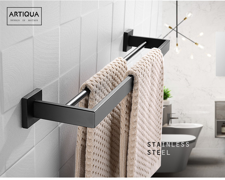 Artiqua Towel Bar Single Rod 304 Stainless Steel Double Rod Towel Rack Black Bathroom Accessory