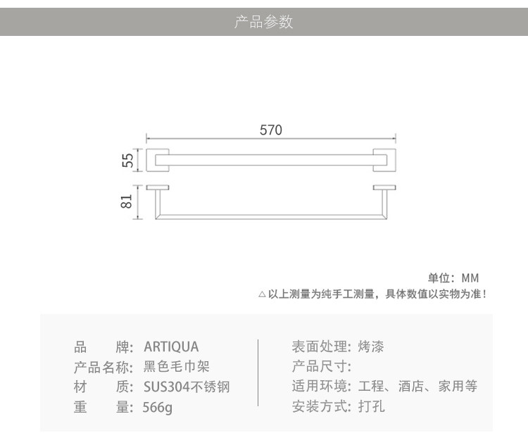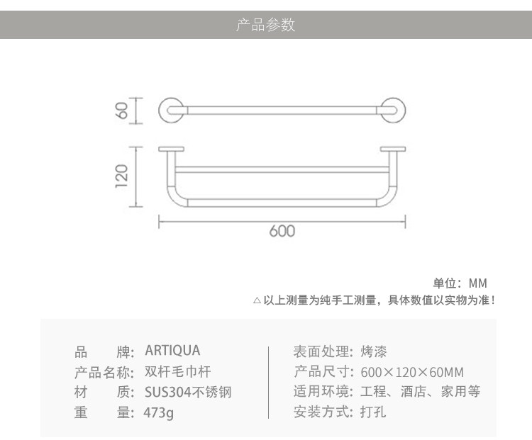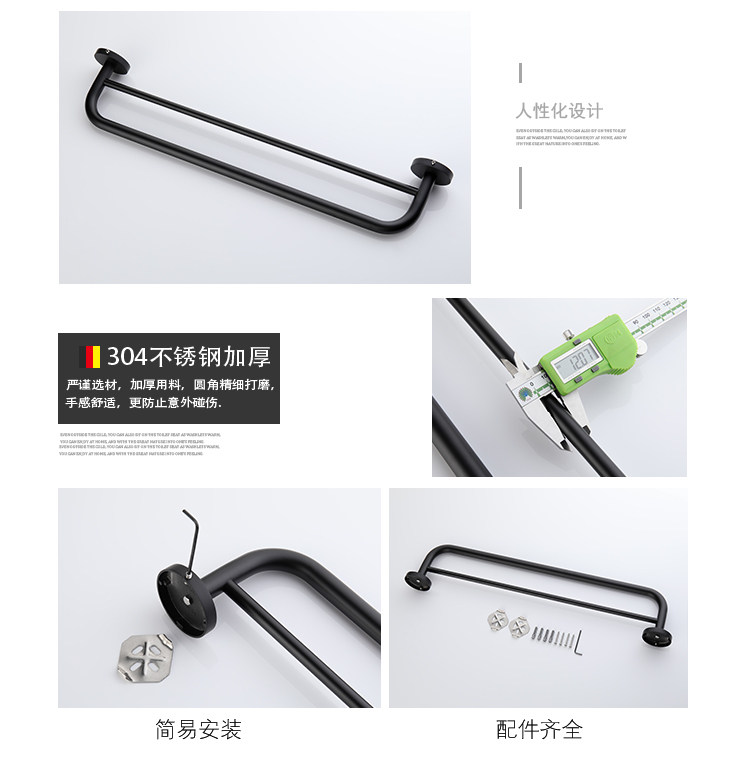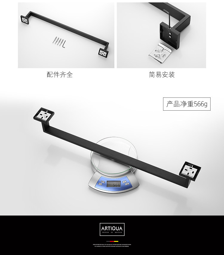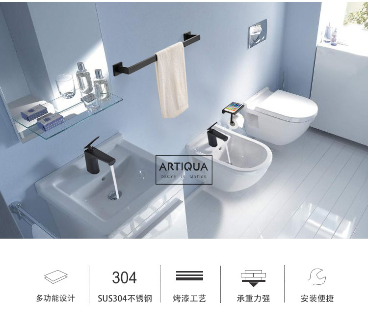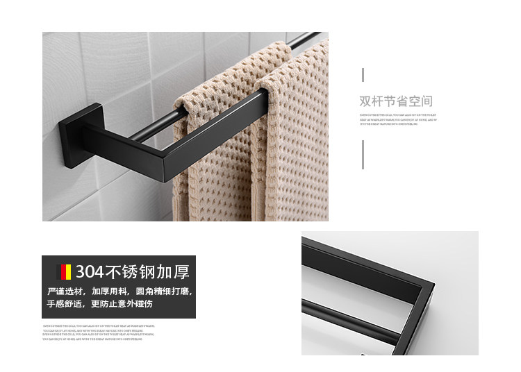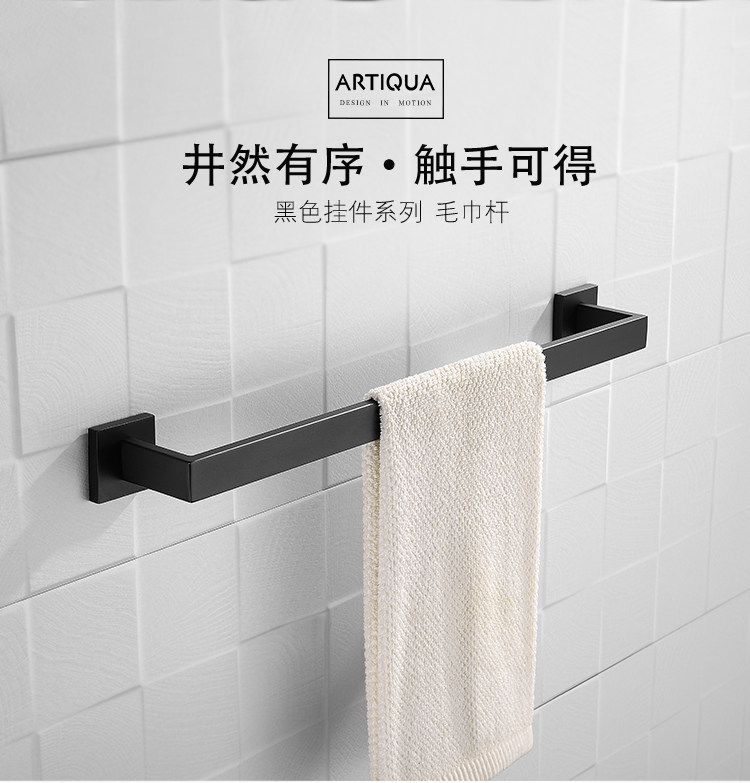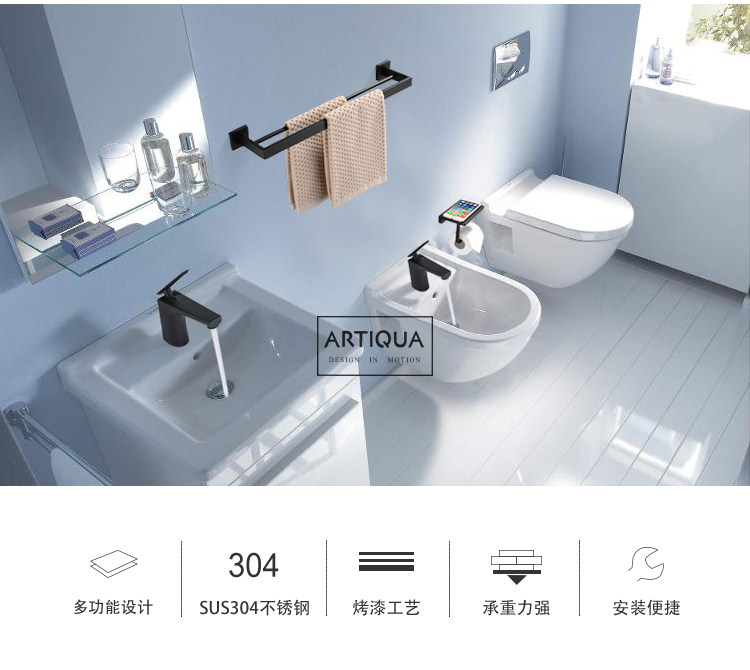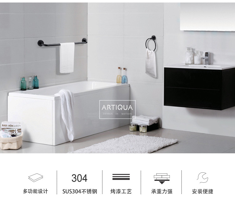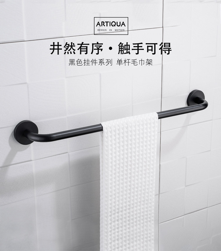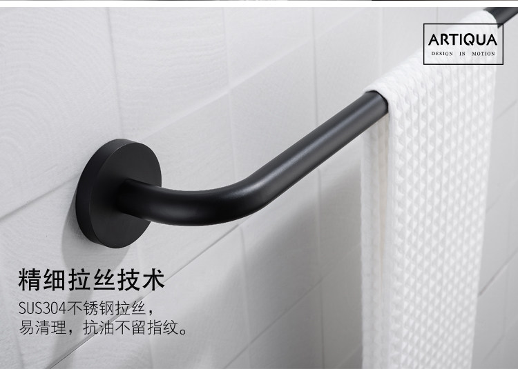 Artiqua Towel Bar Single Rod 304 Stainless Steel Double Rod Towel Rack Black Bathroom Accessory