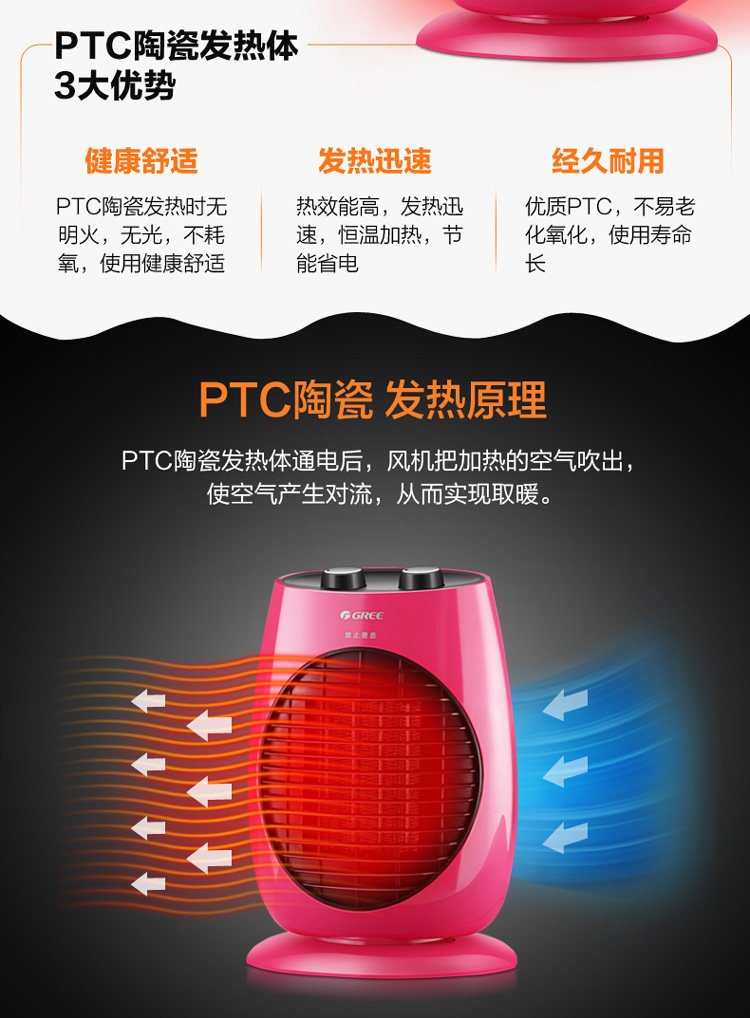 Gree heater heater fan household small electric heater for bathroom dual-use wall-mounted quick-heat fan energy-saving heating