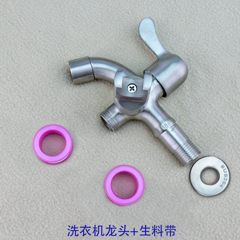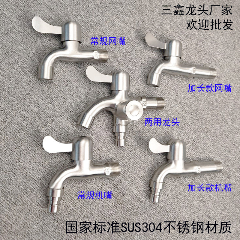 Washing Machine Small Spout Faucet 304 Stainless Steel Dual-Purpose Double-Head Single Cold Mop Sink Universal Extended Household Faucet