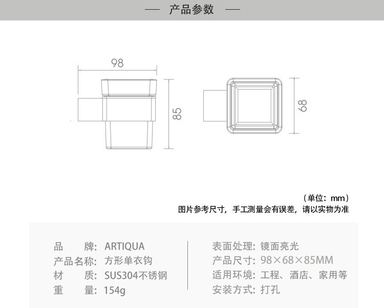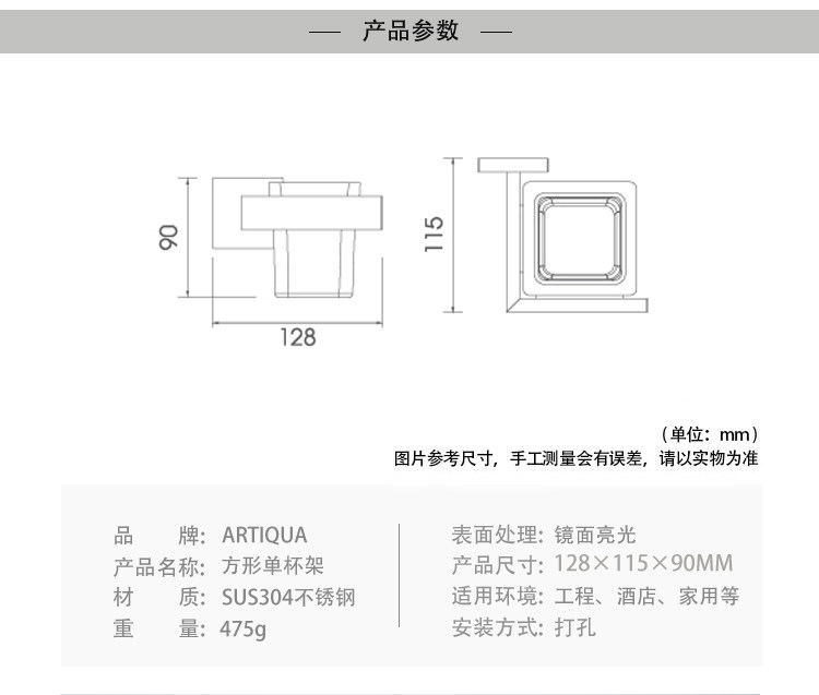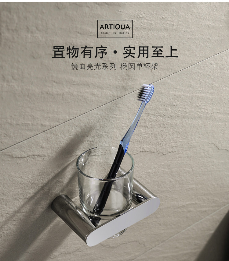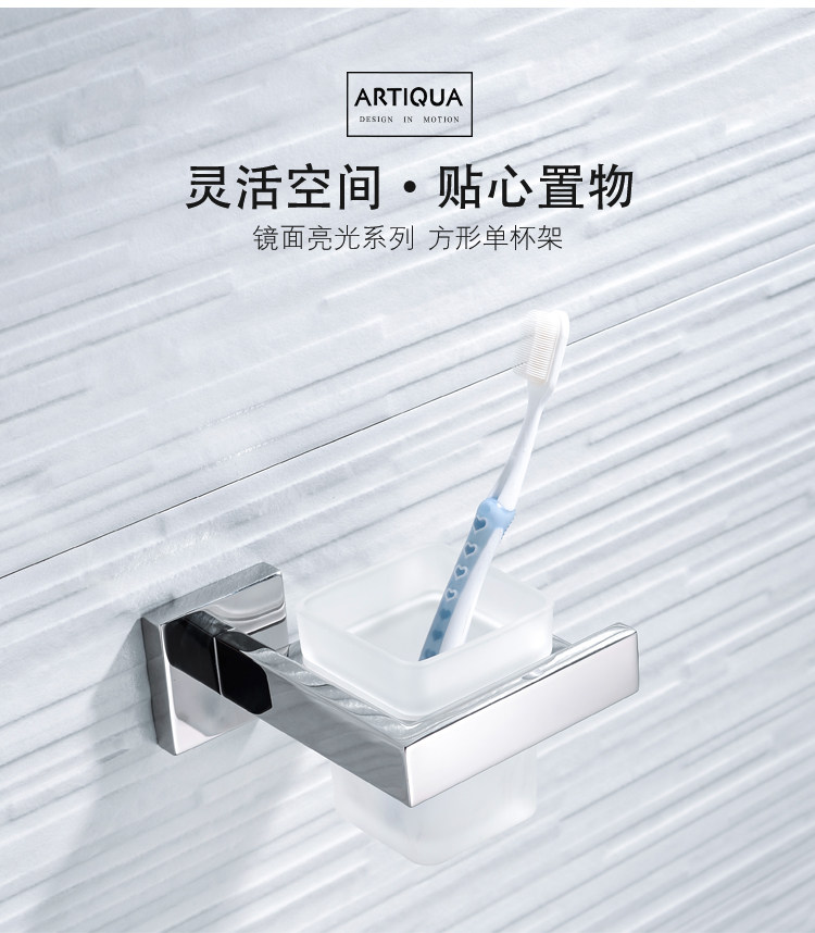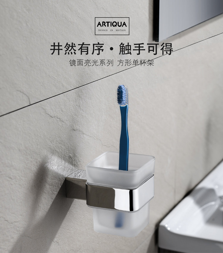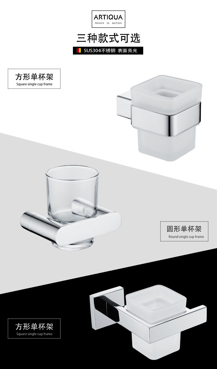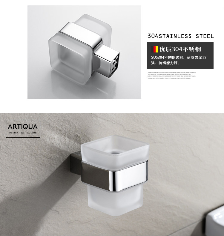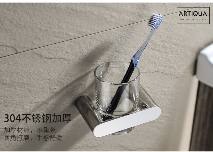 Artiqua 304 Stainless Steel Glossy Toothbrush Cup Holder Mouthwash Cup Bathroom Hardware Accessories