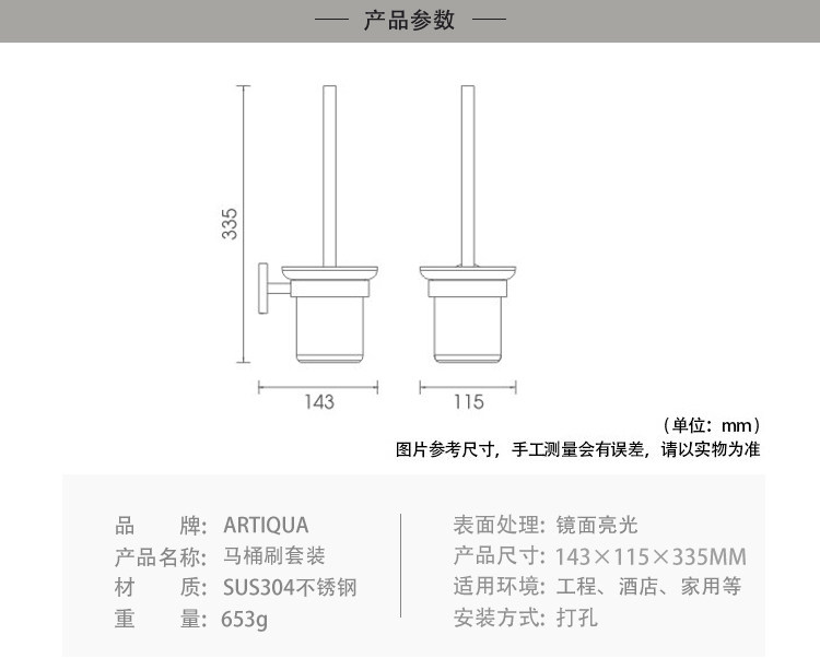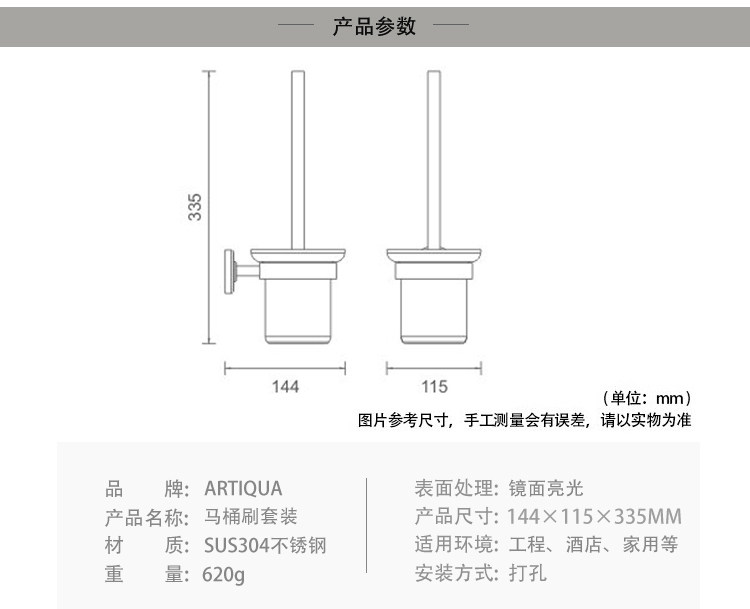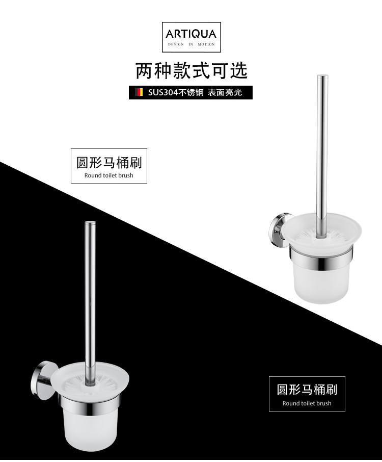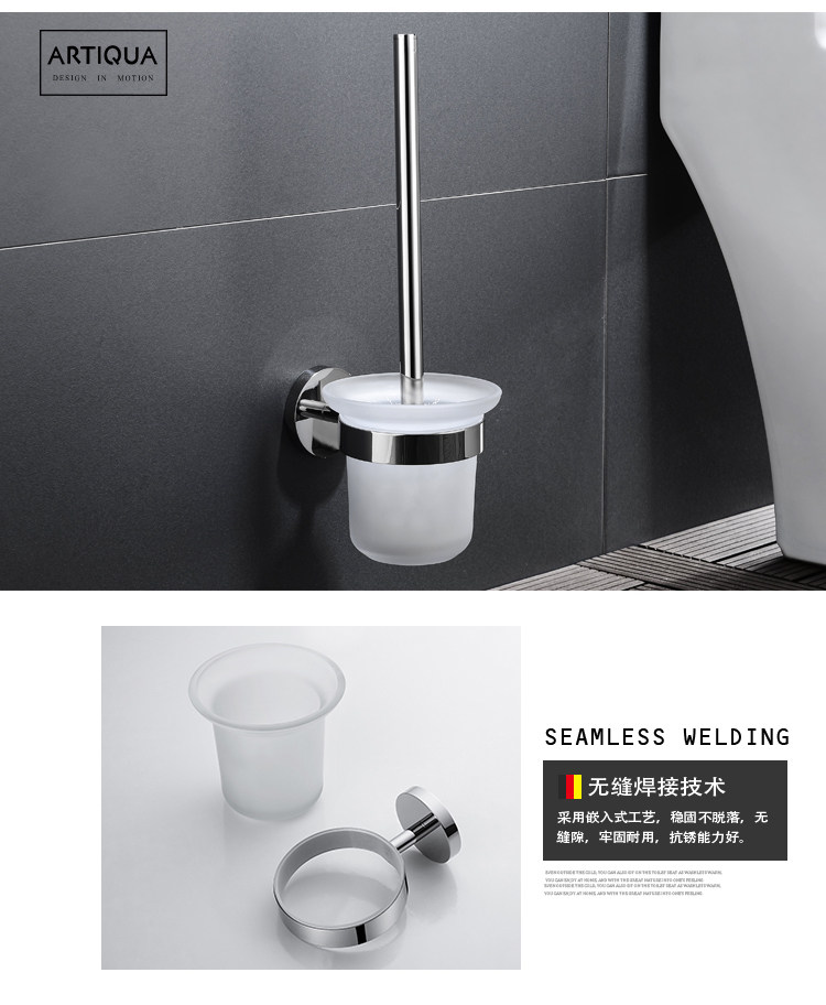 Artiqua Toilet Brush Toilet Cup 304 Stainless Steel Toilet Brush Holder Glossy Toilet Cup Holder Bathroom Accessory