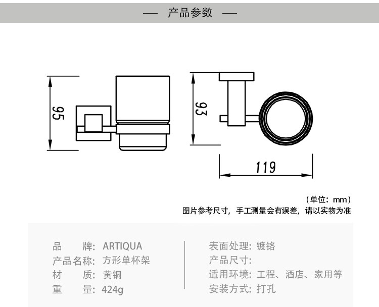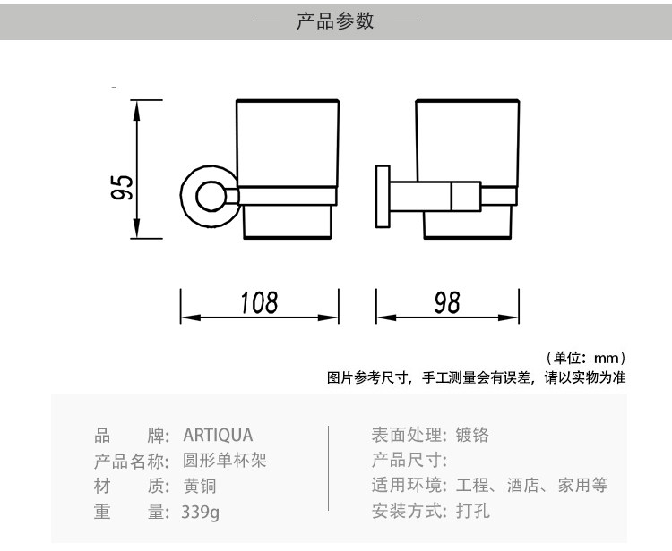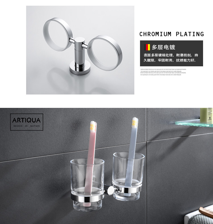 Artiqua All-Copper Glossy Toothbrush Cup Holder Mouthwash Cup Bathroom Hardware Accessories