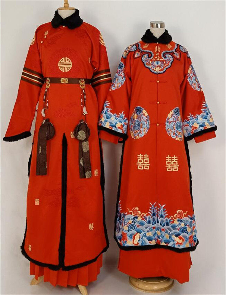 Yanxi Strategy (Tv Series) Style Traditional Chinese Couple's Qing Dynasty Court Dress, Traditional Chinese Bride's Xiuhe Suit, Red Chinese-Style Wedding Dress