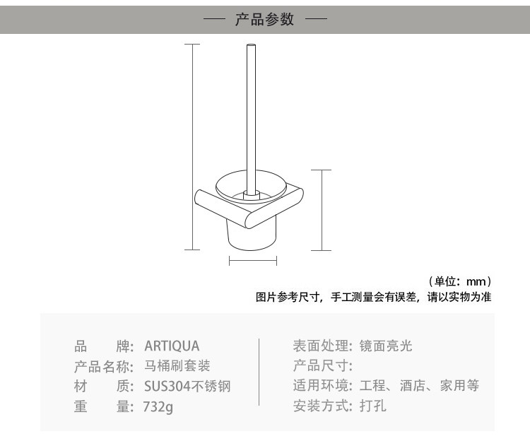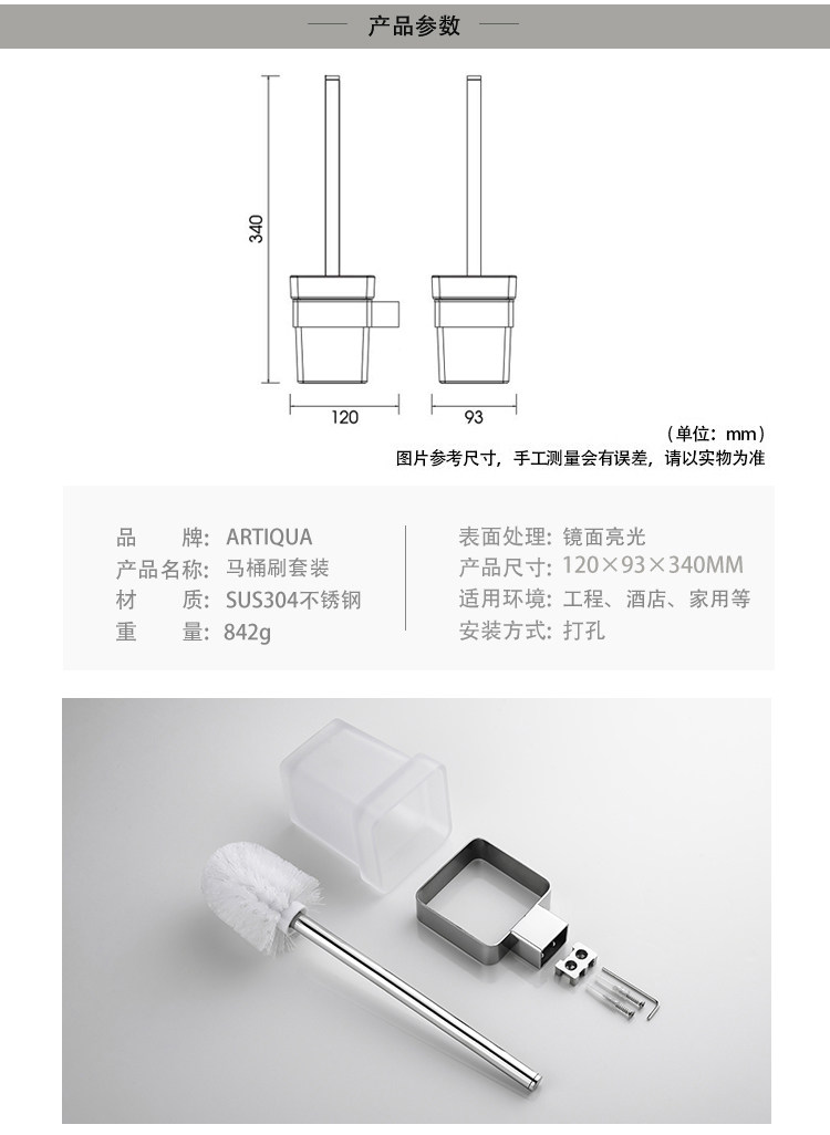 Artiqua Toilet Brush Toilet Cup 304 Stainless Steel Toilet Brush Holder Bright Toilet Cup Holder Bathroom Pendant