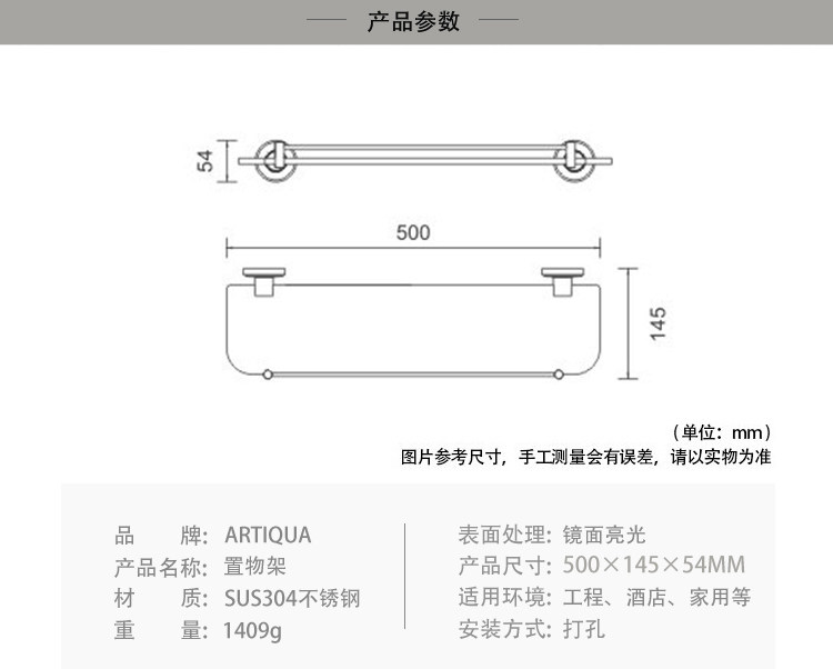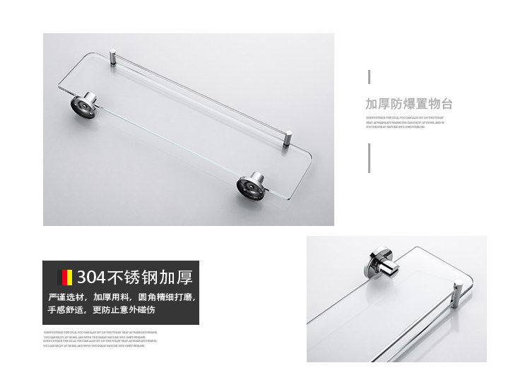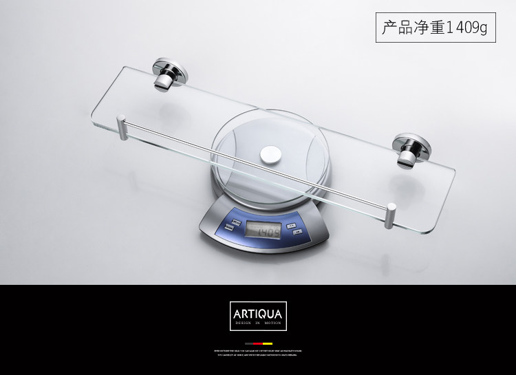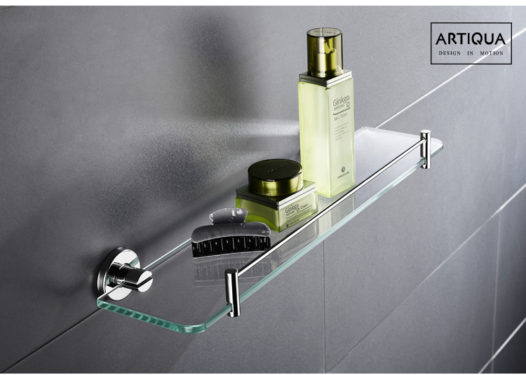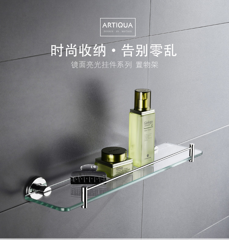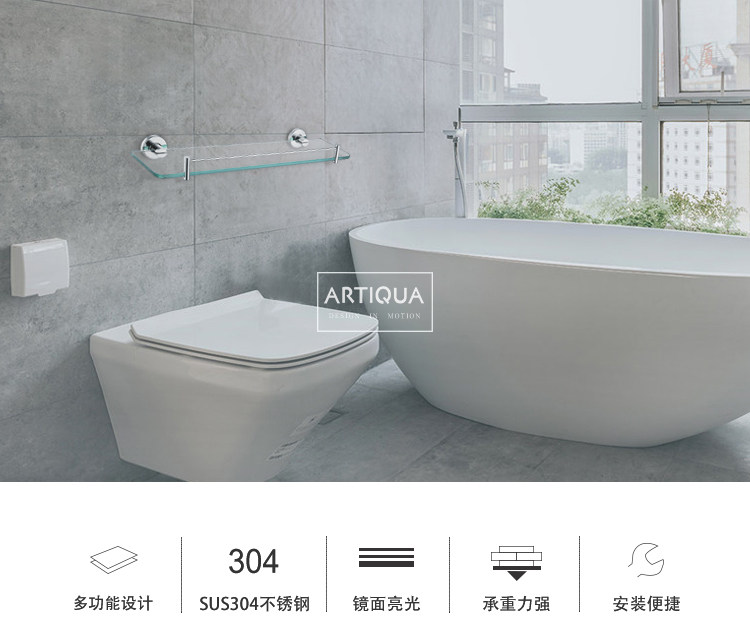 Artiqua304 Stainless Steel Bathroom Shelf Wall-Mounted Tempered Glass Cosmetic Shelf Single Layer Glossy