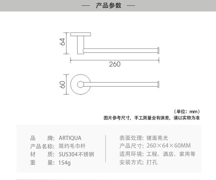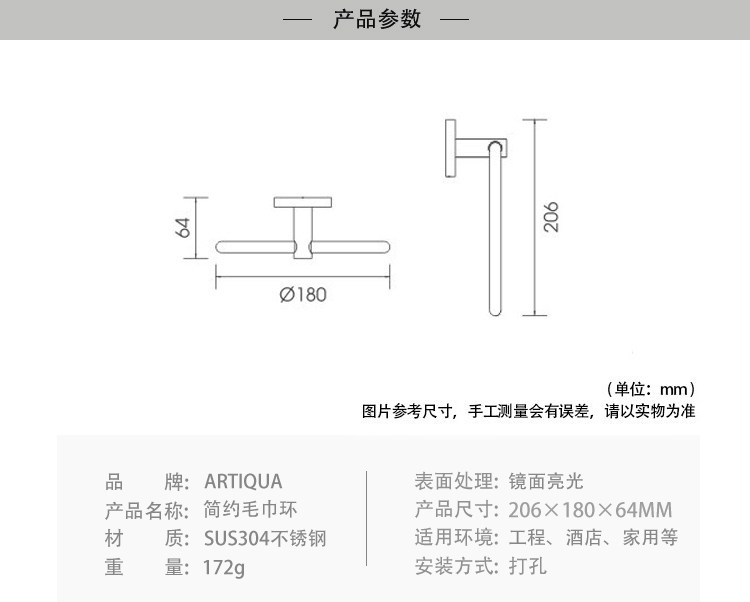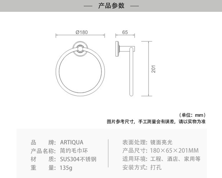 Artiqua304 Stainless Steel Towel Ring Towel Hanger Towel Ring Towel Rack Bath Towel Ring Hardware Accessories