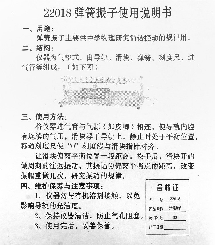 Spring oscillator horizontal air cushion type double spring type spring oscillator with scale simple harmonic vibration law experimenter demonstrator junior high school physics teaching instrument teaching aid J22018