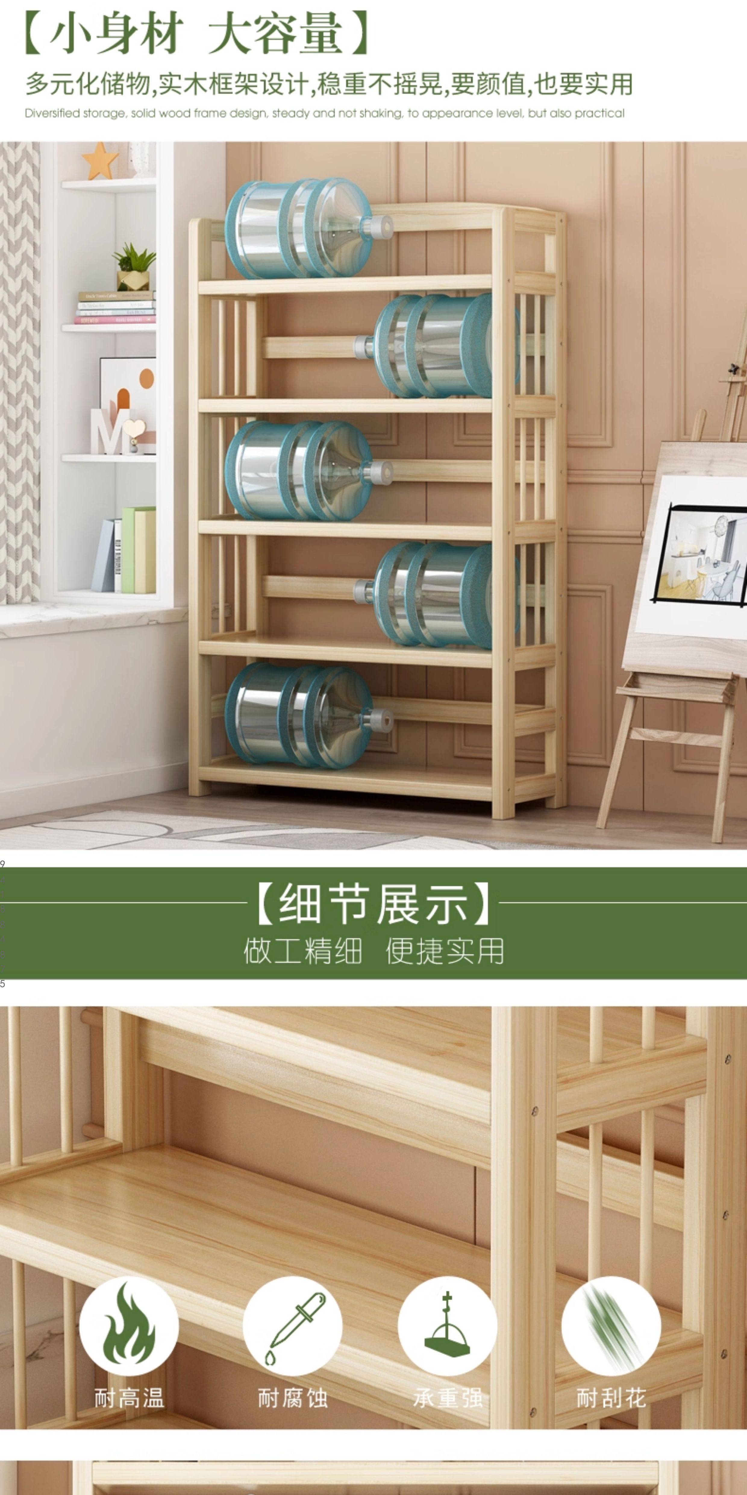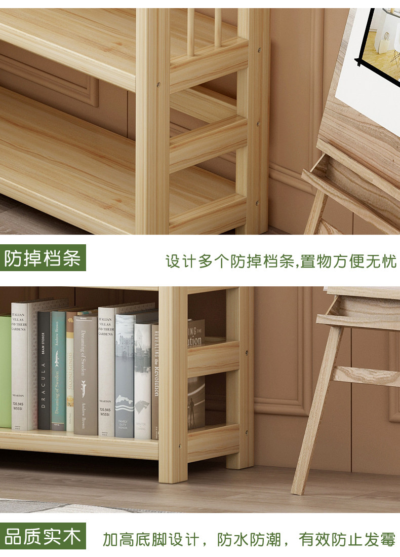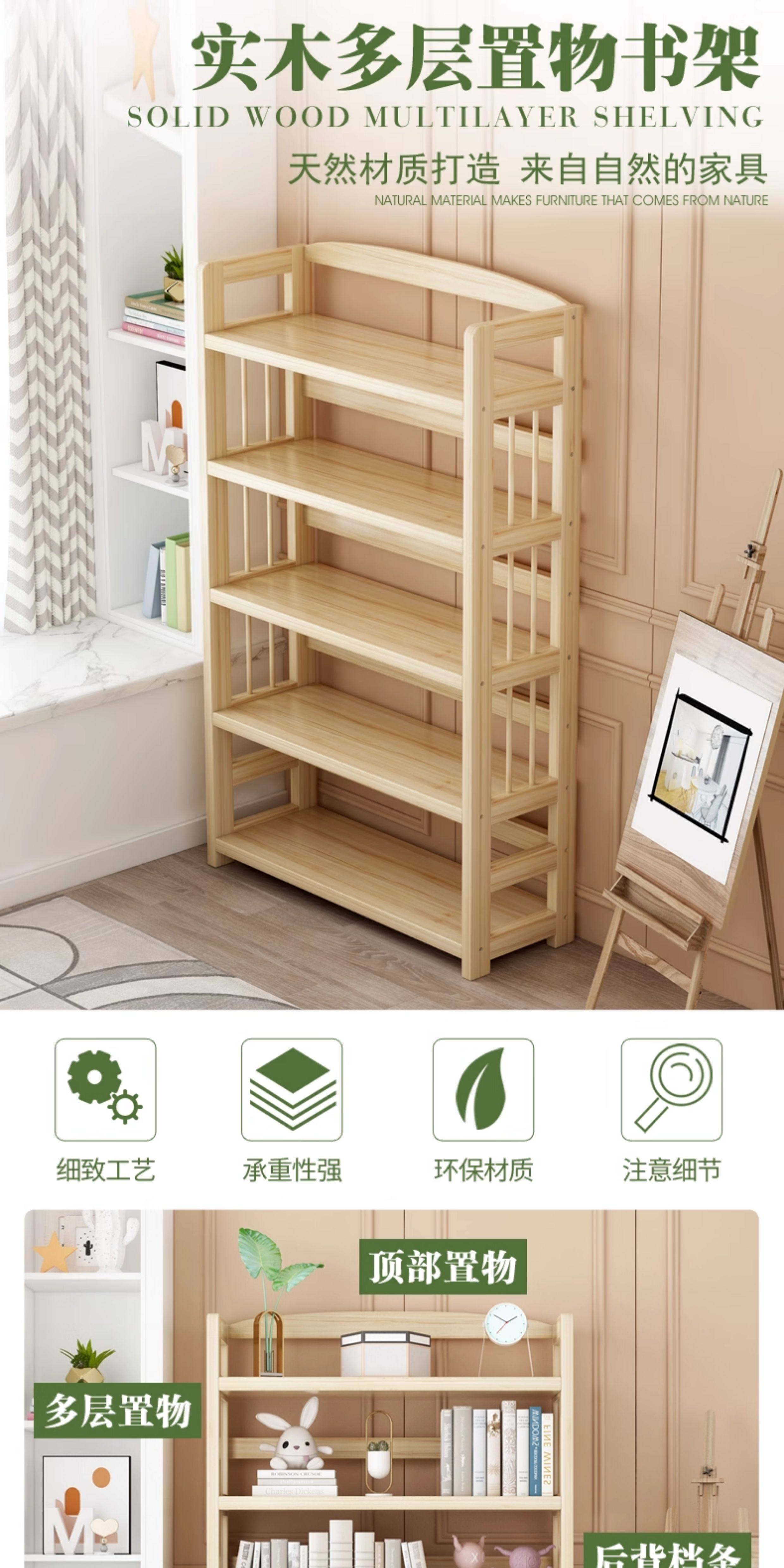 All Solid Wood Bookshelf Floor-Standing Storage Rack Bookcase Home Integrated Office Wall-Mounted Vertical Pine Storage Cabinet