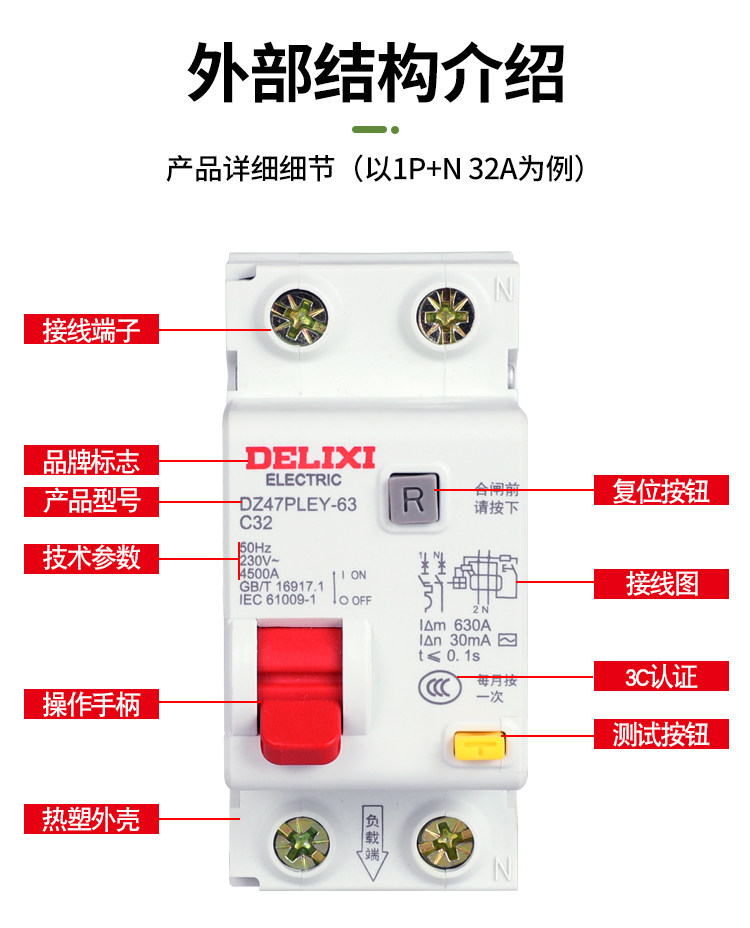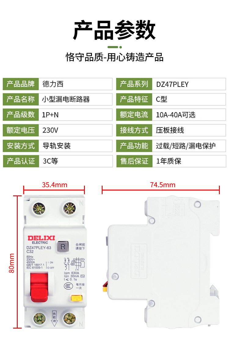 Delixi Double Inlet and Double Outlet Leakage Protector Dz47Pley Cdb3Le 6A10A16A20A25A32A40A