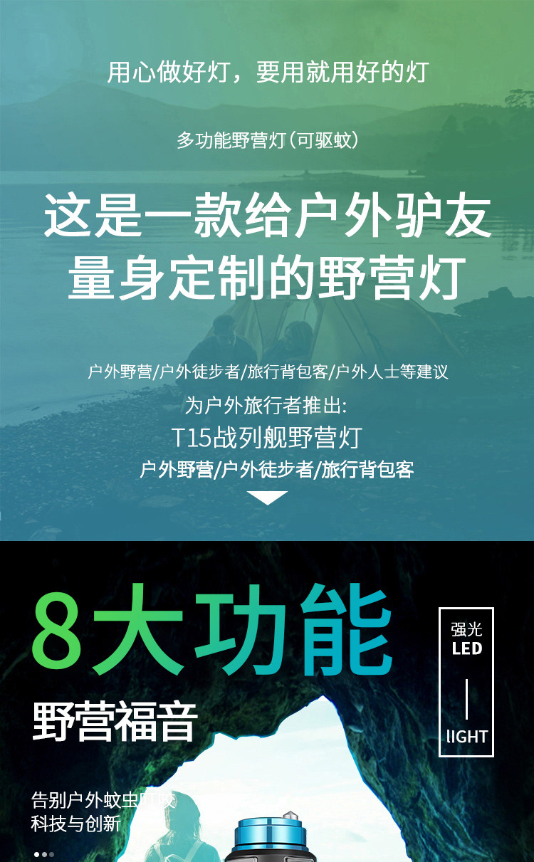 Camping Led Rechargeable Outdoor Lighting Multi-Functional Camping Tent Mosquito Repellent Lamp with Magnet Adsorption Warning Light Hanging Lamp