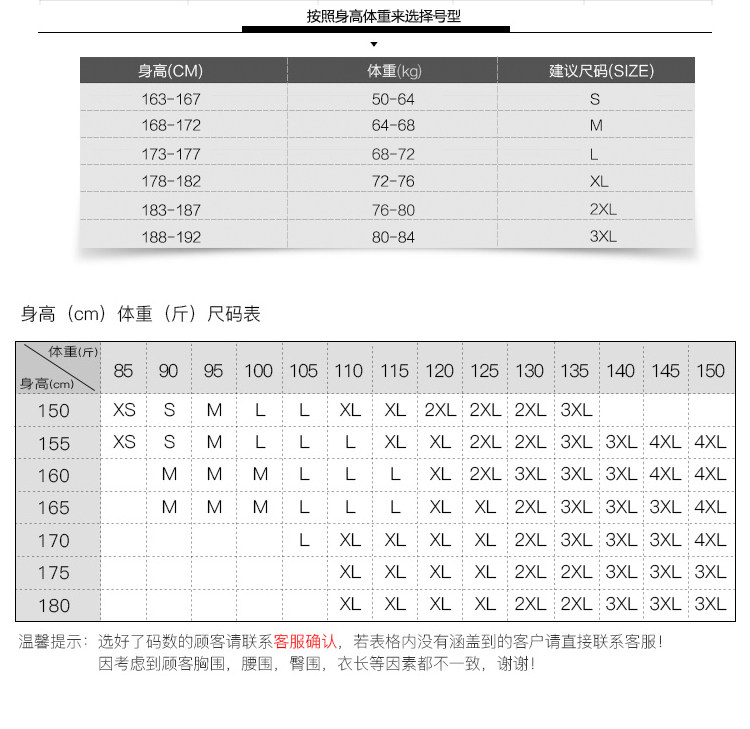 China (cm) 160-165/84-86 165-170 / 88-90 167-172 / 92-96 168-173 / 98-102 170-176 / 106-110