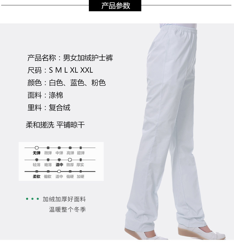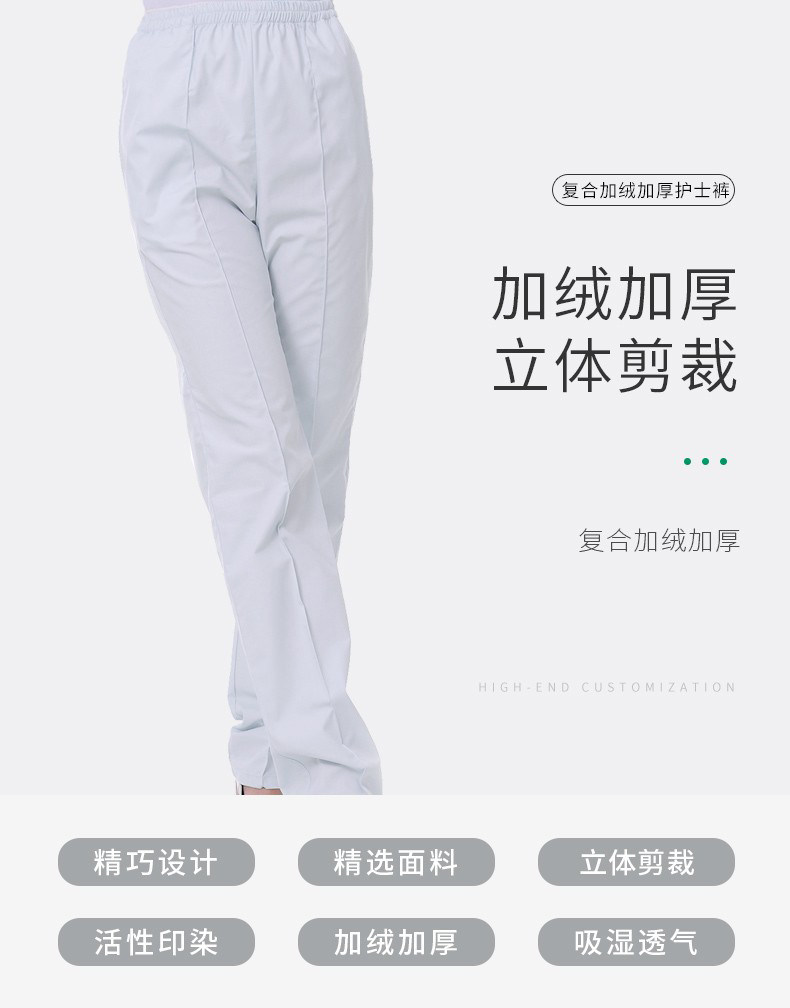 Snowland Fruit Compound Fleece-Lined Work Pants with Elastic Waistband, Suitable for Outerwear, Warm, Thick, Comfortable, Slim-Fit Pants for Doctors and Nurses