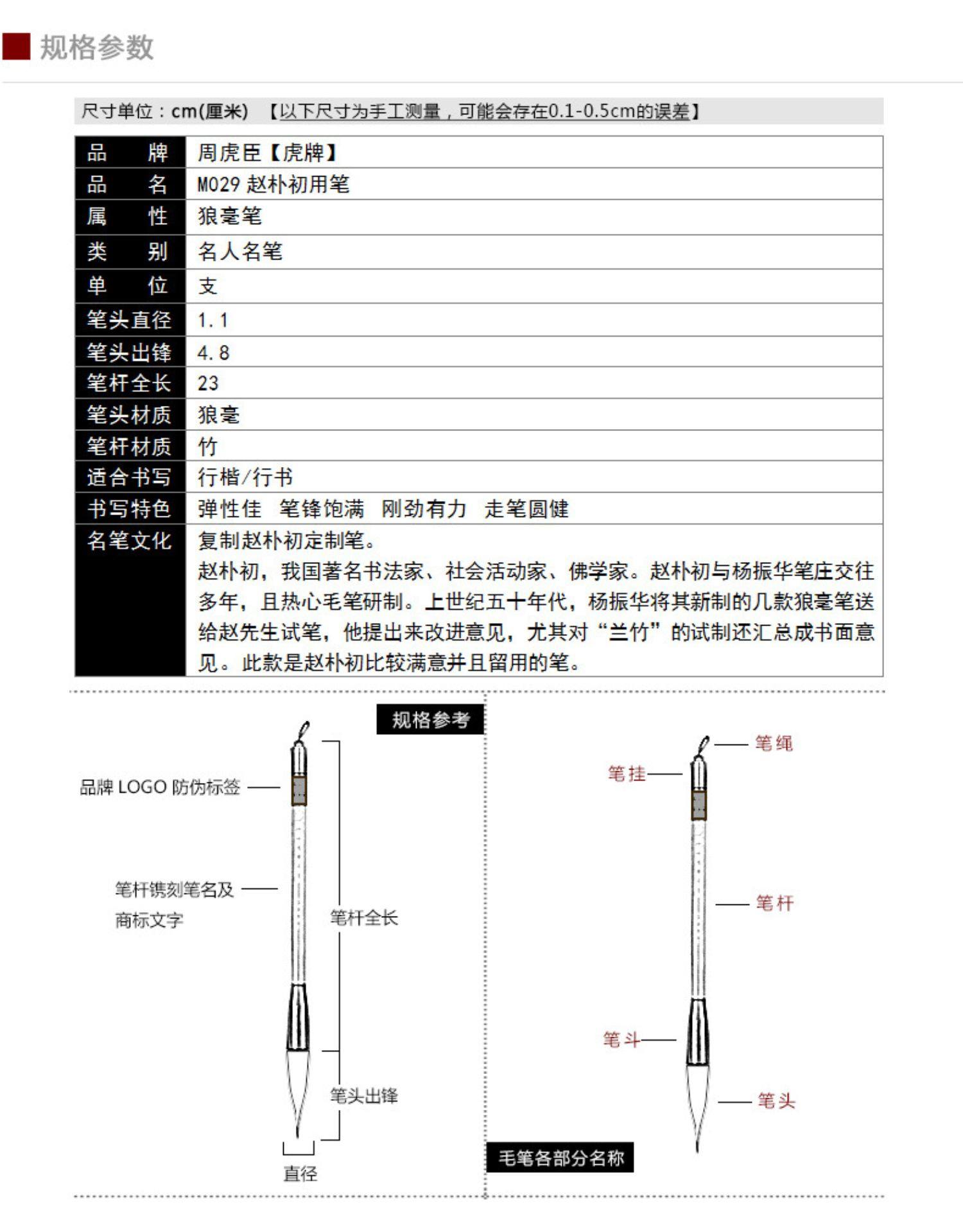 Shanghai Zhou Huchen writing brush authentic Zhao Puchu uses pen wolf hair regular script calligraphy student regular script adult beginners