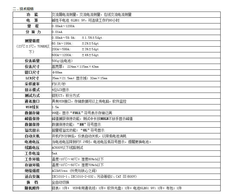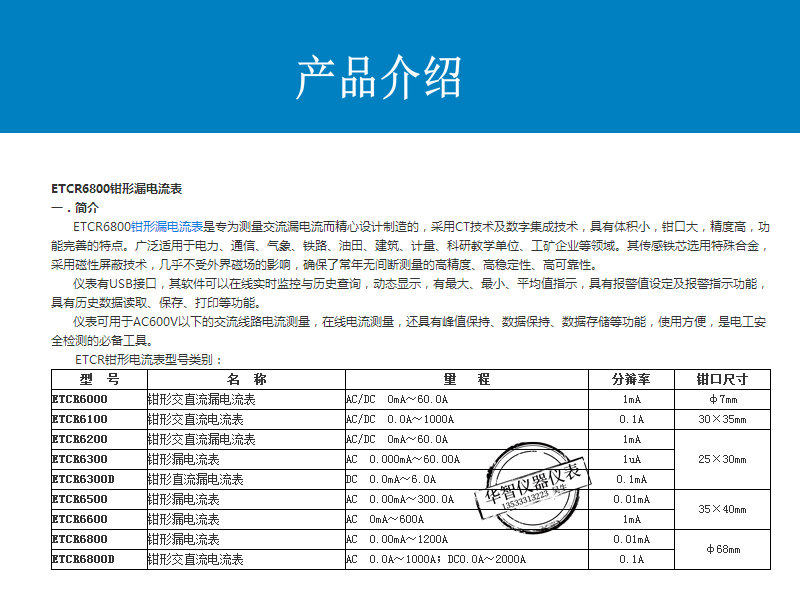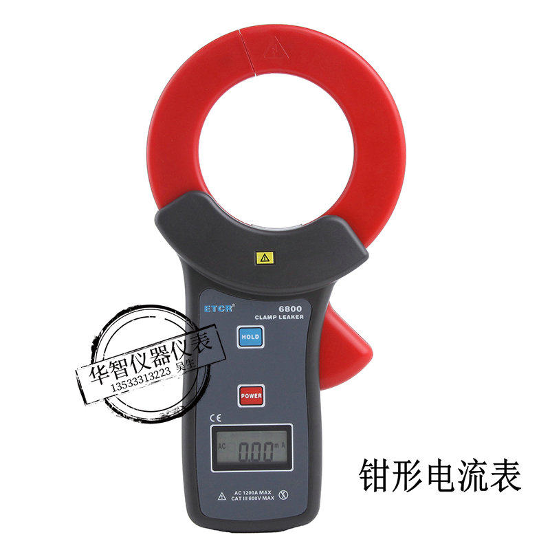 Etcr6800 Clamp-On Leakage Current Meter Tester Large-Caliber Ac/Dc Clamp-On Ammeter Multimeter