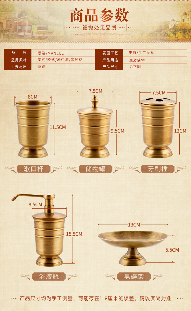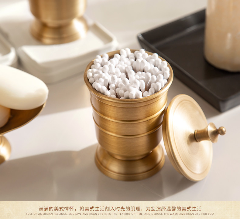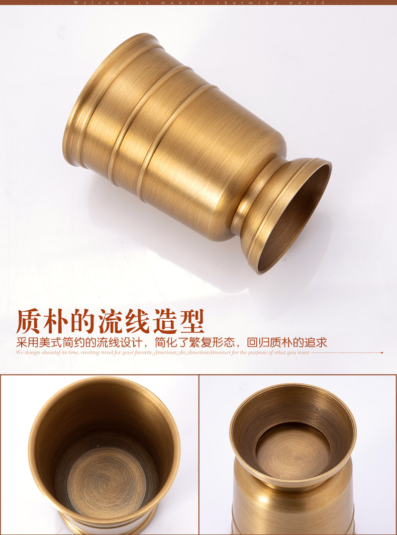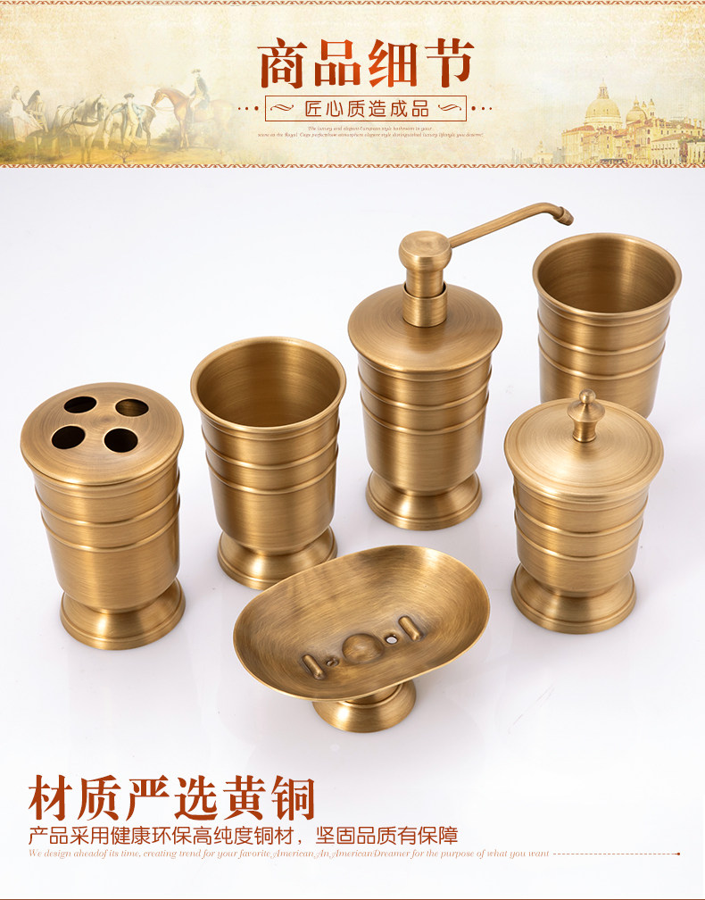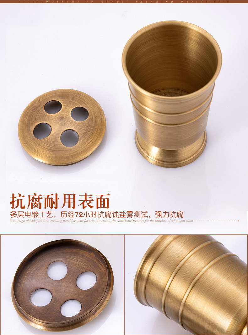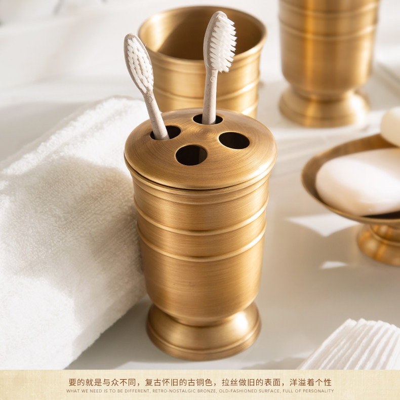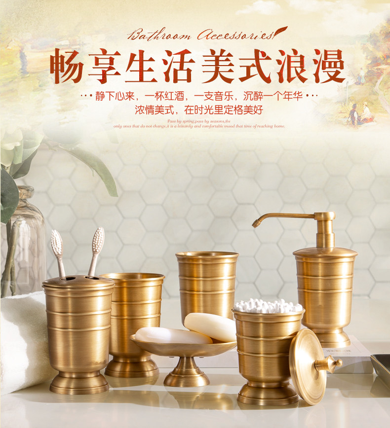 American all-copper bathroom toiletries set, drain toothbrush cup holder, mouthwash cup, press hand sanitizer bottle storage
