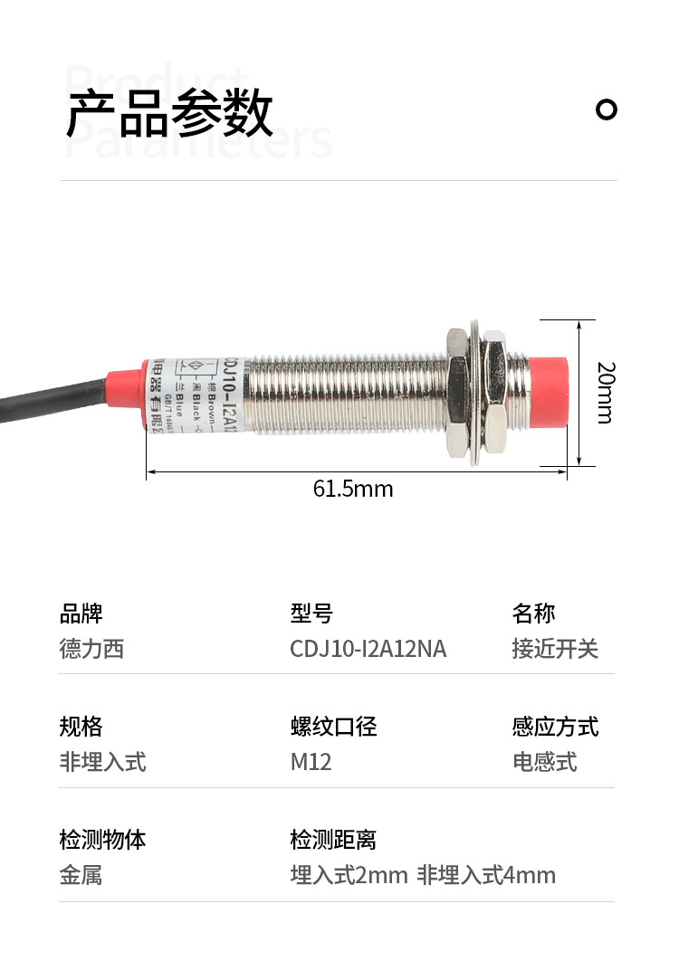 Delixi Proximity Switch Limit Switch Lj12A3-4-Z/Bx Cylindrical Thread 12mm Normally Open Dc Npn 3-Wire