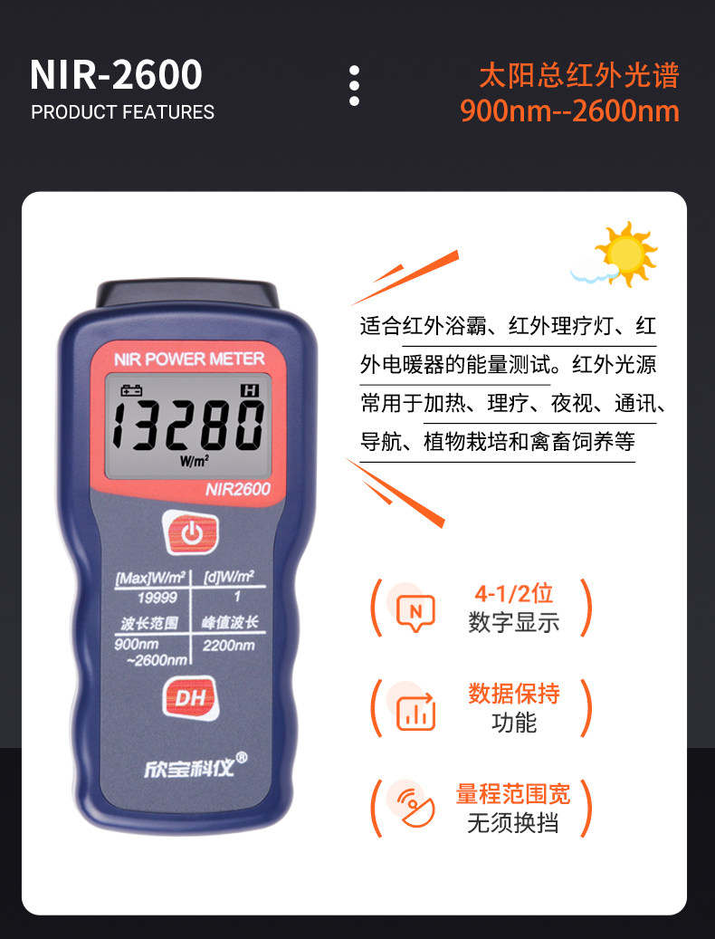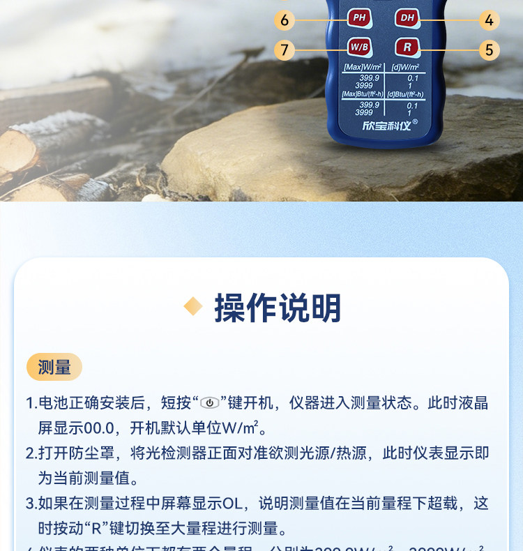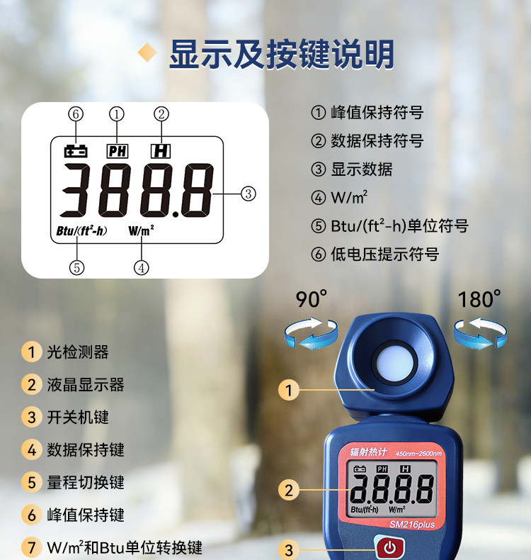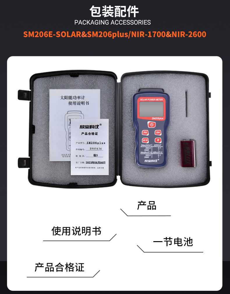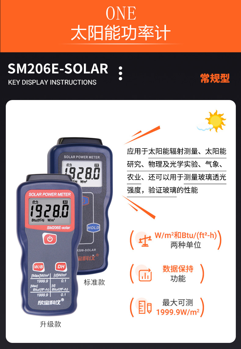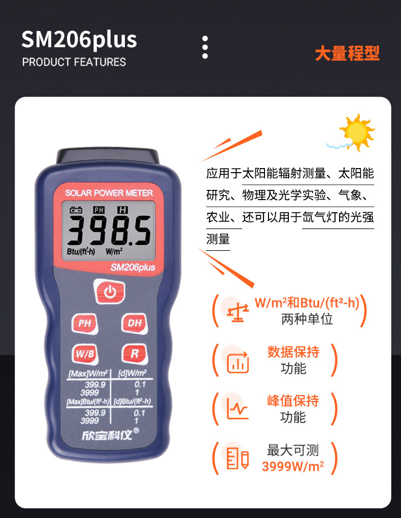 Xinbao Sm206 Solar Light Power Meter Solar Radiation Tester Visible Light Intensity Detection Irradiation Meter