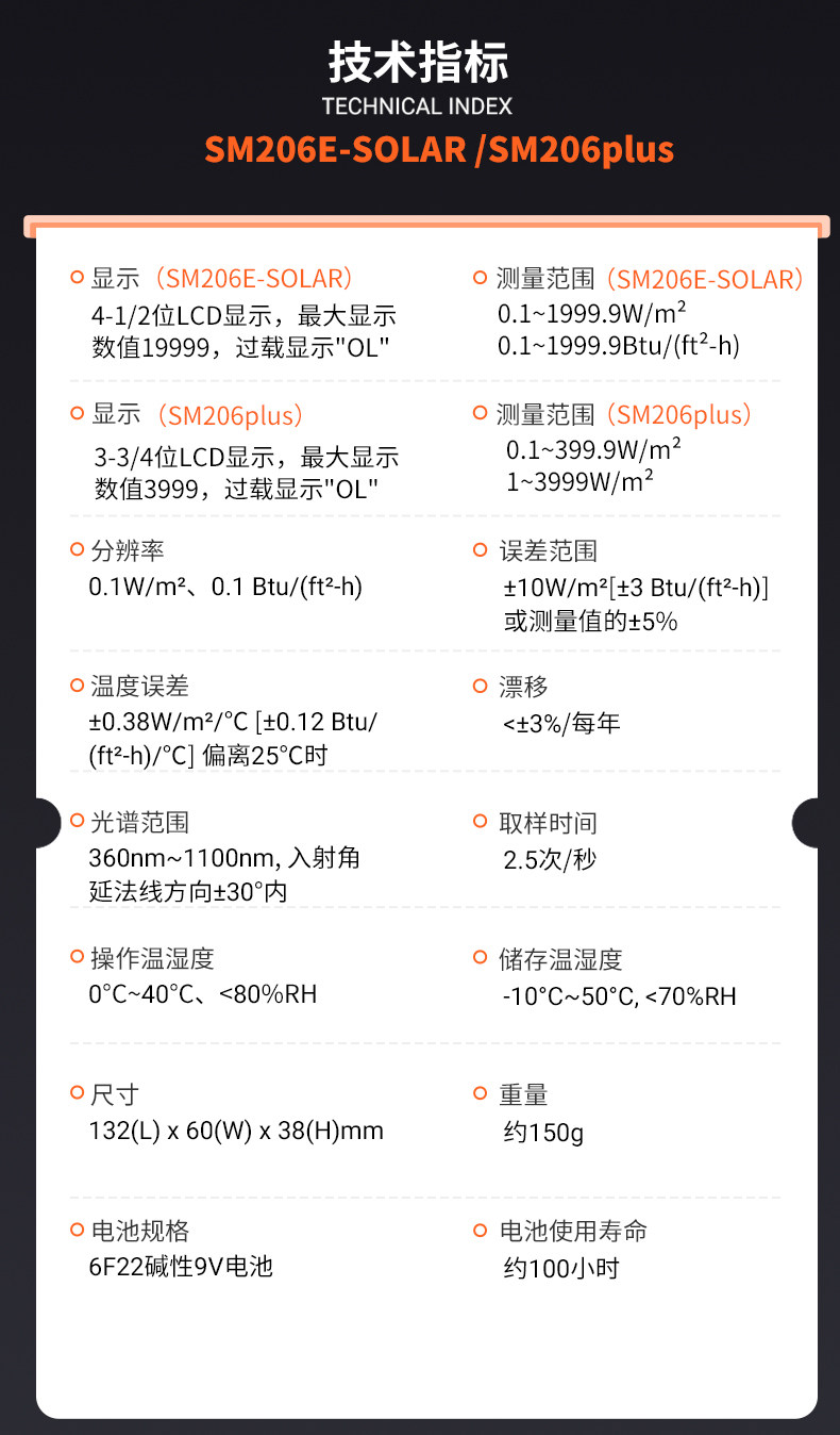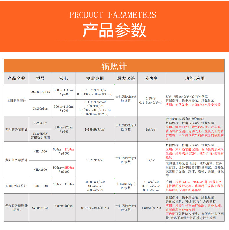 Color Classification Sm206-Solar (0.1-1999.9) Power Meter,Sm206-Uv (1-19999) Ultraviolet Irradiation Meter,Sm206-Nir (1-1999) Infrared Radiometer,Sm206E-Solar New Visible Light Power Meter,Sm206Plus Large Range Visible Light Power Meter,SM206E-UV(280-370nm),Nir-1700 New Infrared Irradiation Meter,Nir-2600 Total Solar Infrared Spectroradiometer,Sm206-Par Photosynthetically Active Irradiance Meter Comes Standard,Sm206-Par Contains Waterproof Probe,Sm206E-Par New Style,Sm206E-Par (Including Waterproof Probe) New Style,Ir850-940 Infrared Led Power 850Nm/940Nm,Sm216Plus (Irradiation Pyrometer)