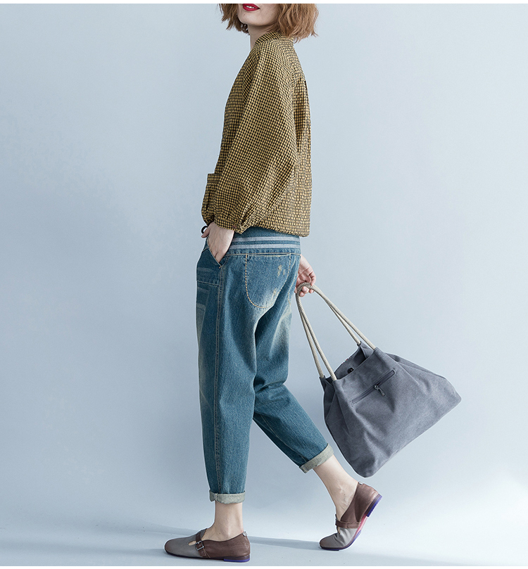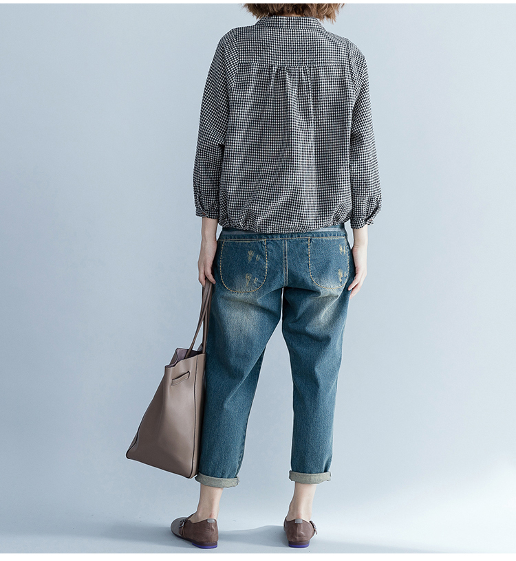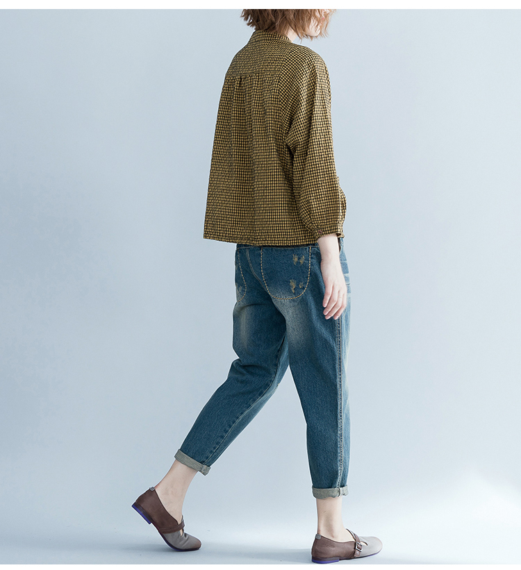 Cotton and Linen Fine Plaid Shirt for Women, Spring and Summer New Style, Retro, Large Size, Loose, Versatile, Button-Down Cardigan, Casual Short Top
