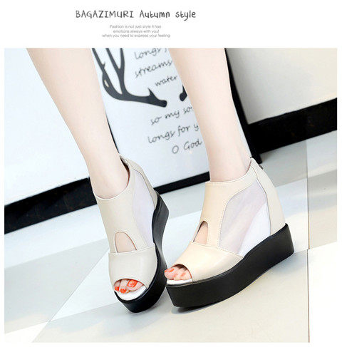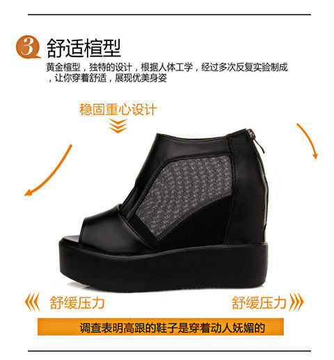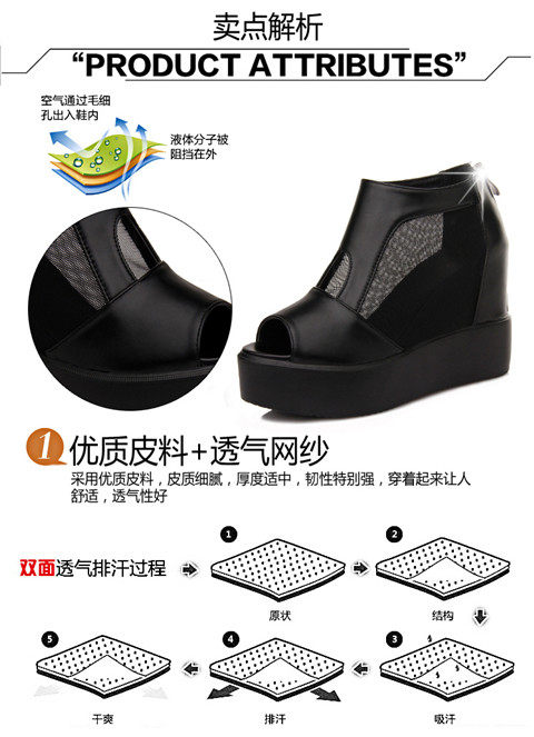 2025 spring and summer new inner heightening fish mouth shoes women's waterproof platform platform shoes summer shoes black mesh sandals