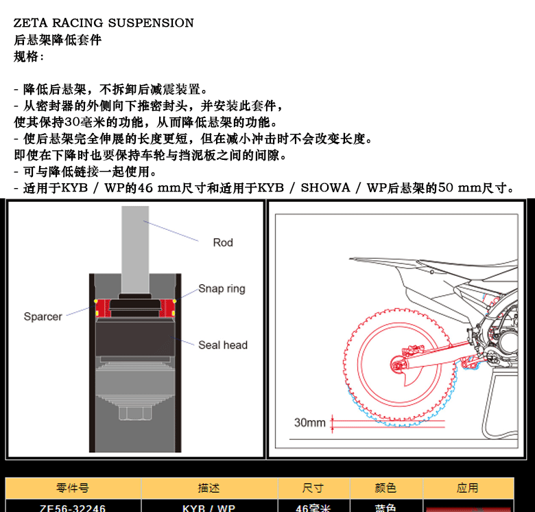 Japan's Zeta Off-Road Motorcycle Accessories Rear Shock Absorption Reduction Kit Imported Car Modification Accessories Reduce 30mm