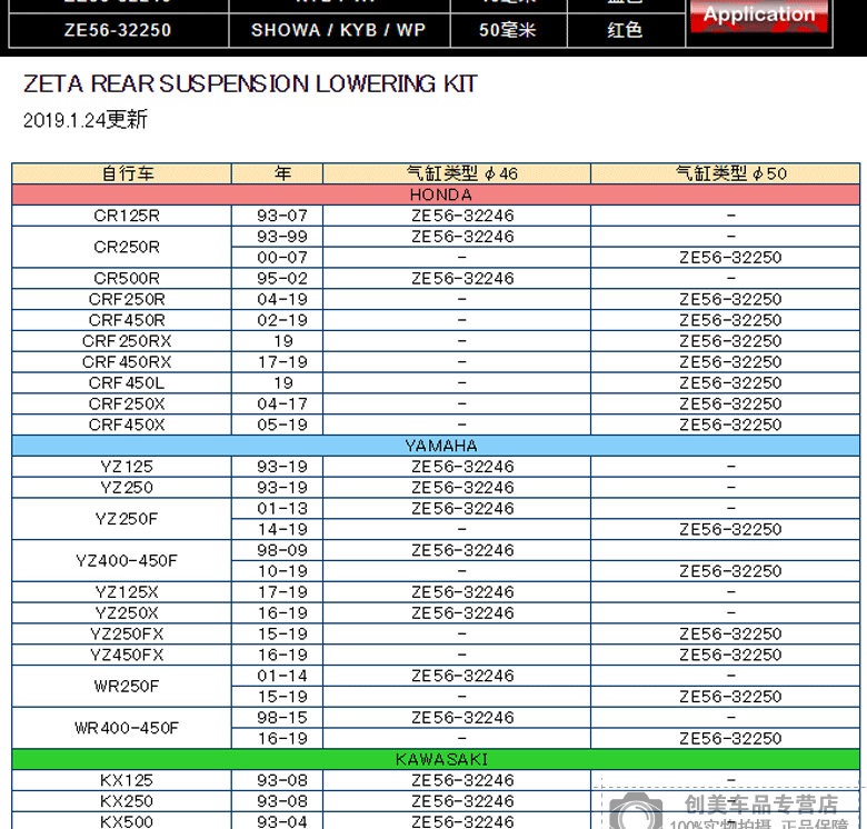Model ZETA RACING SUSPENSION REAR SUSPENSION LOWERING KIT
