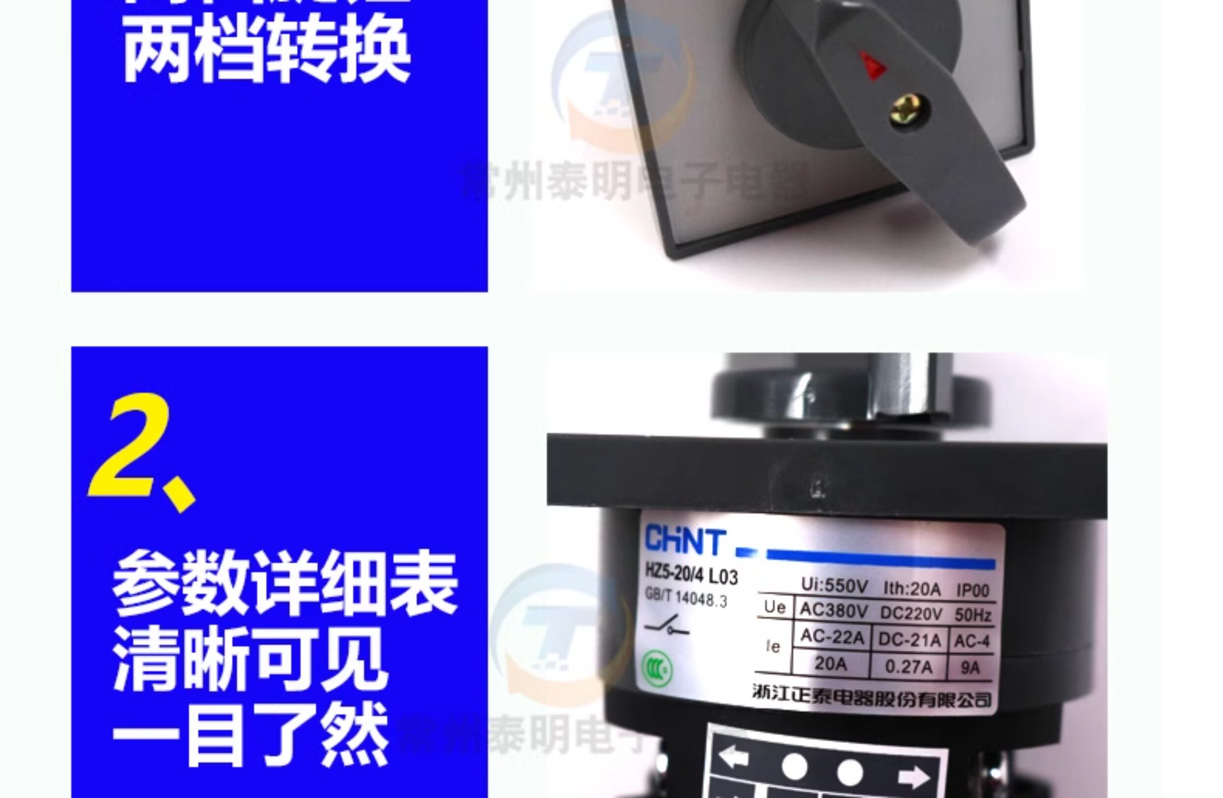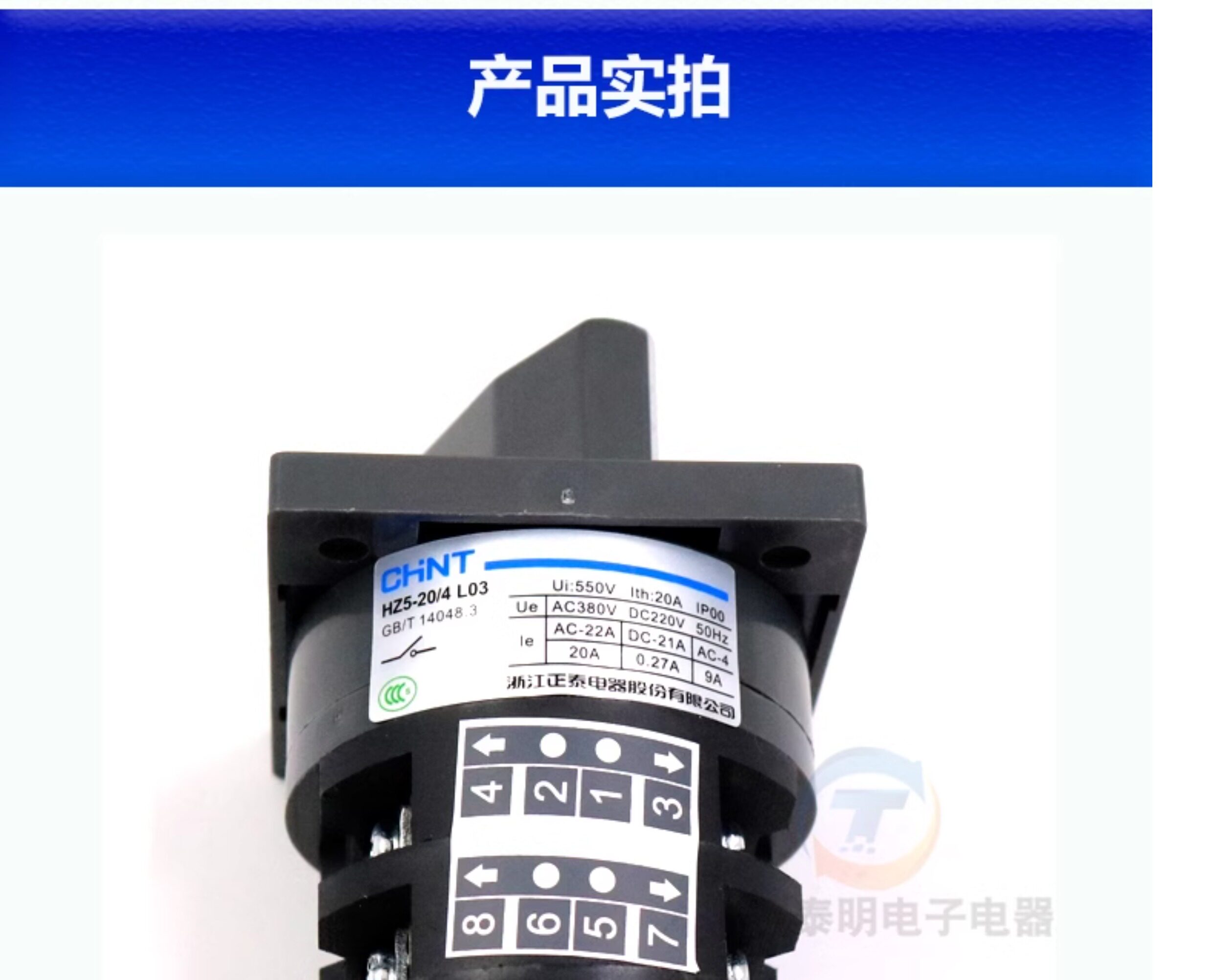 Chint combination switch HZ5-20/4 L03 2-speed 2-section power conversion 4KW 20A motor 380V