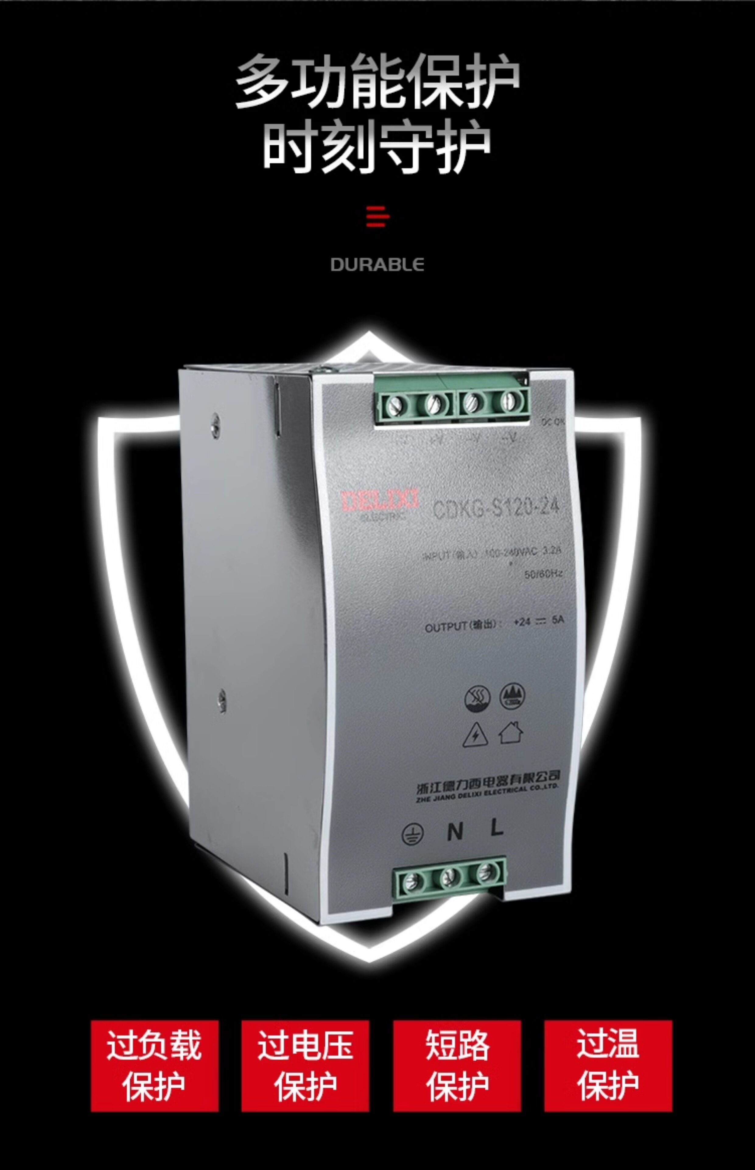 Delixi Edr Switching Power Supply Rail-Mounted Dr-120/60-24V5A Dc 12V10A/240W Drp