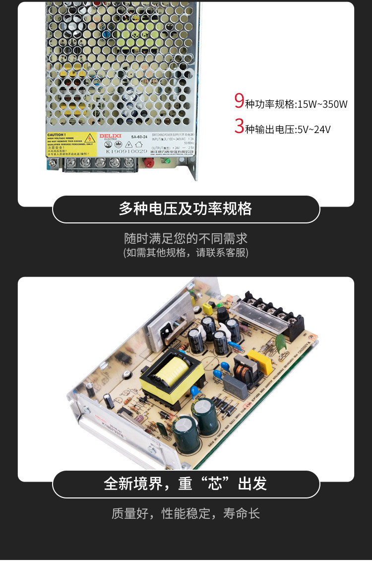 Delixi Sa Switching Power Supply 24V Genuine 220V to 24V 12V 5V Dc Transformer Box 10A 20A 3040