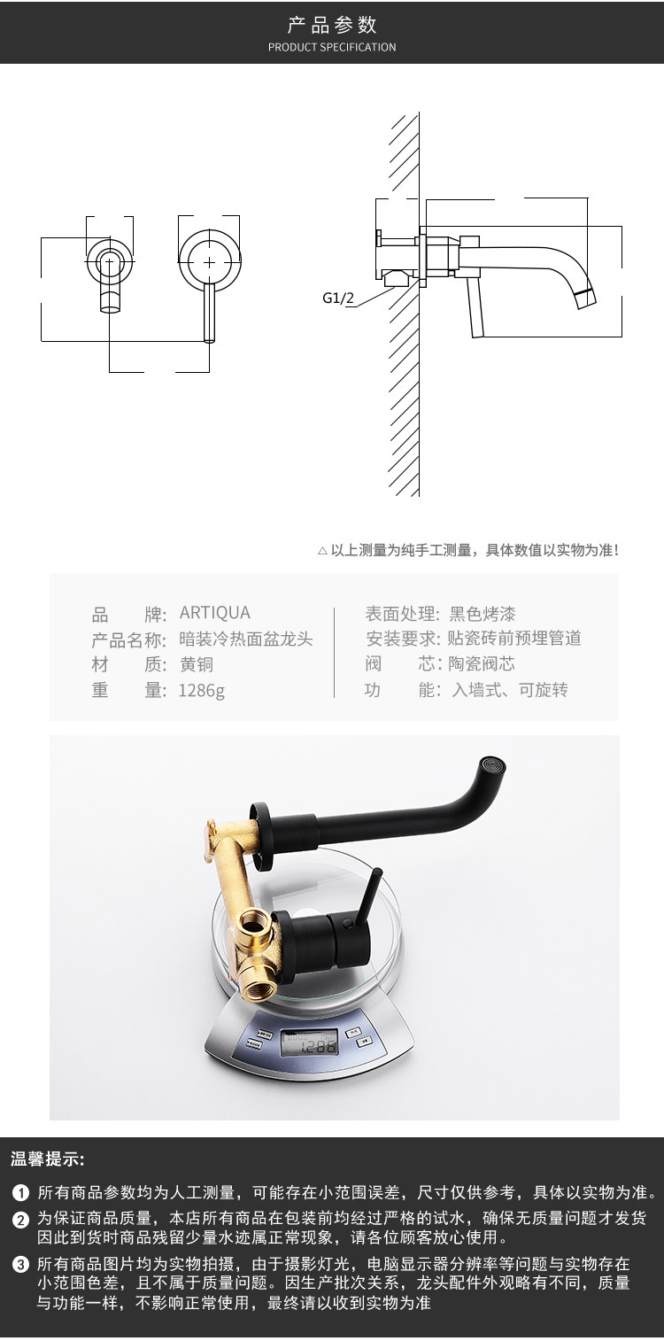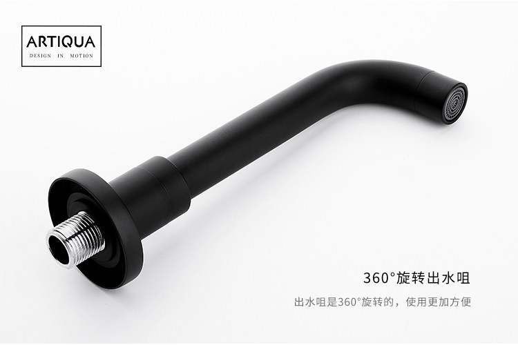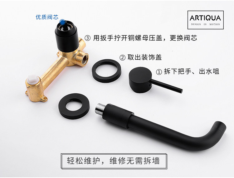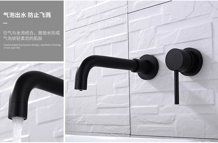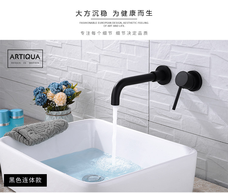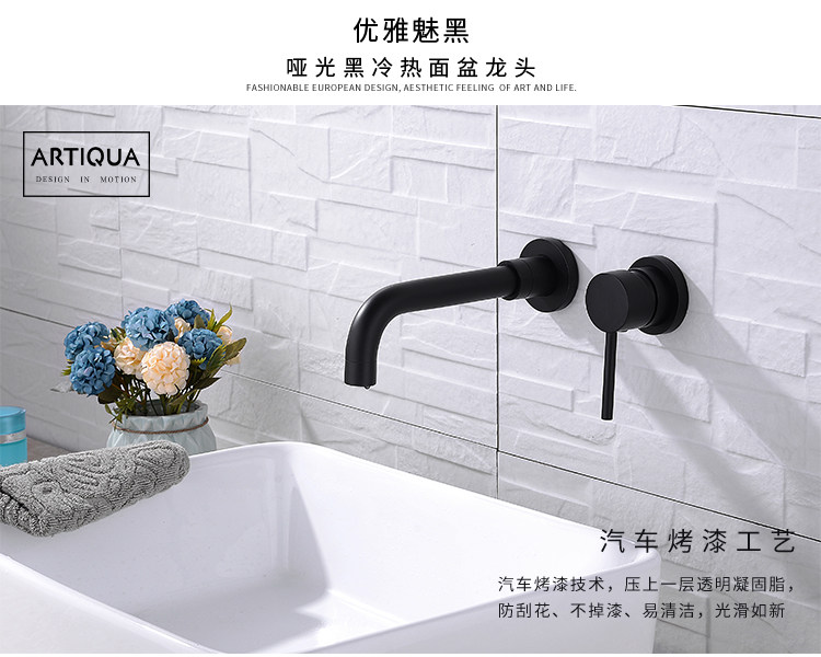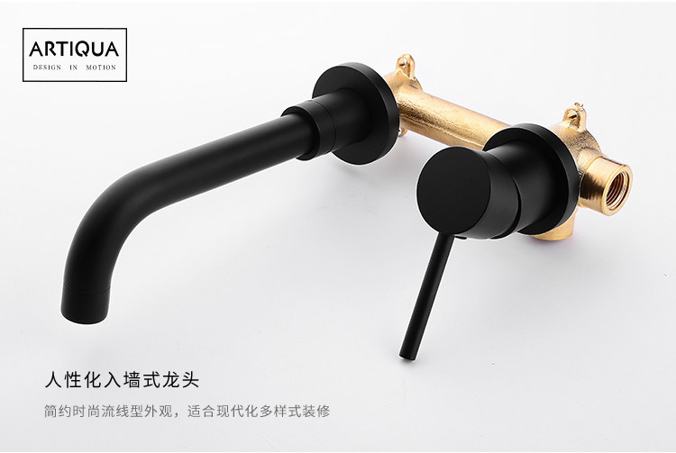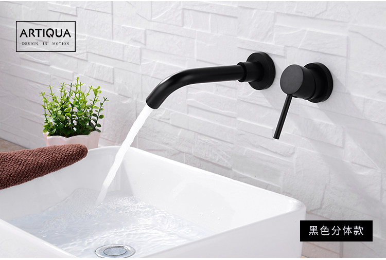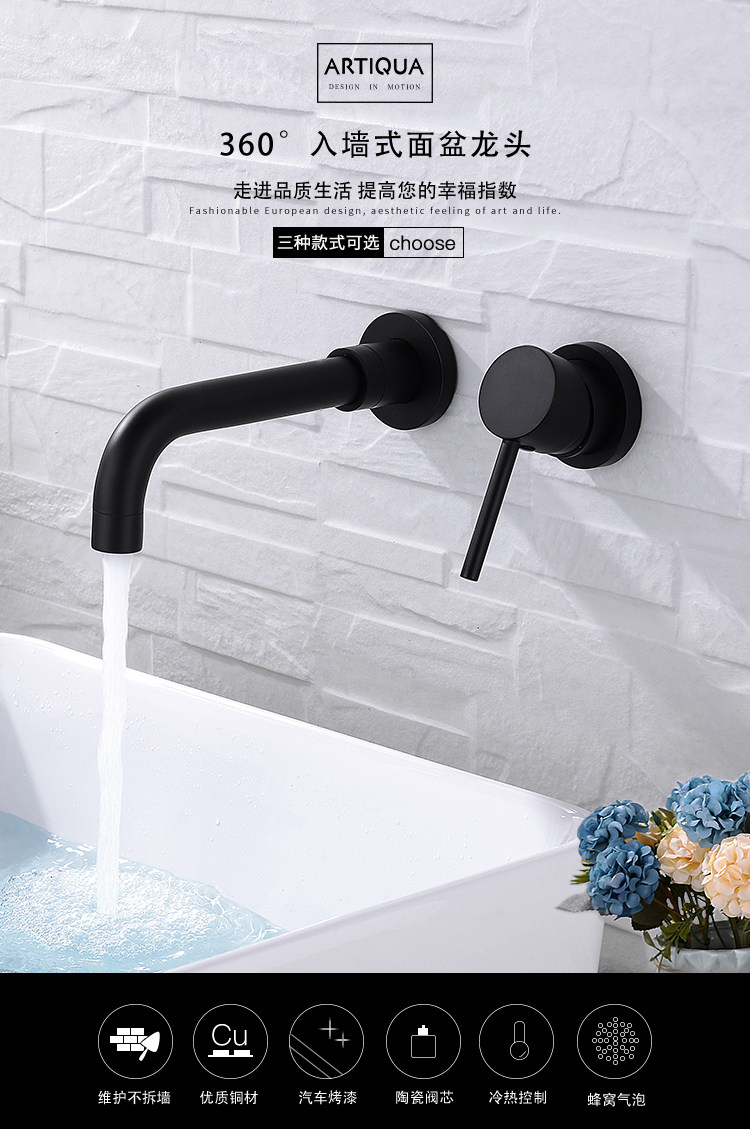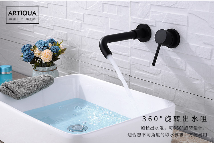 Artiqua All-Copper Concealed Wall-Mounted Basin Faucet for Bathroom Sink, Swivel Faucet, Black