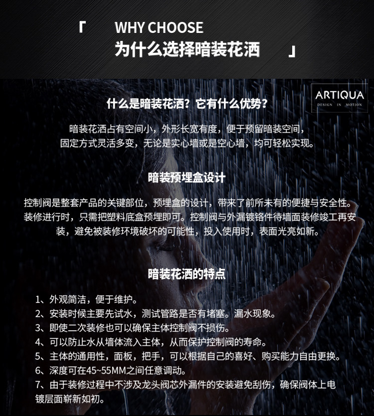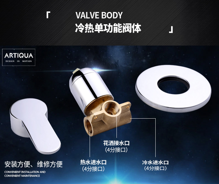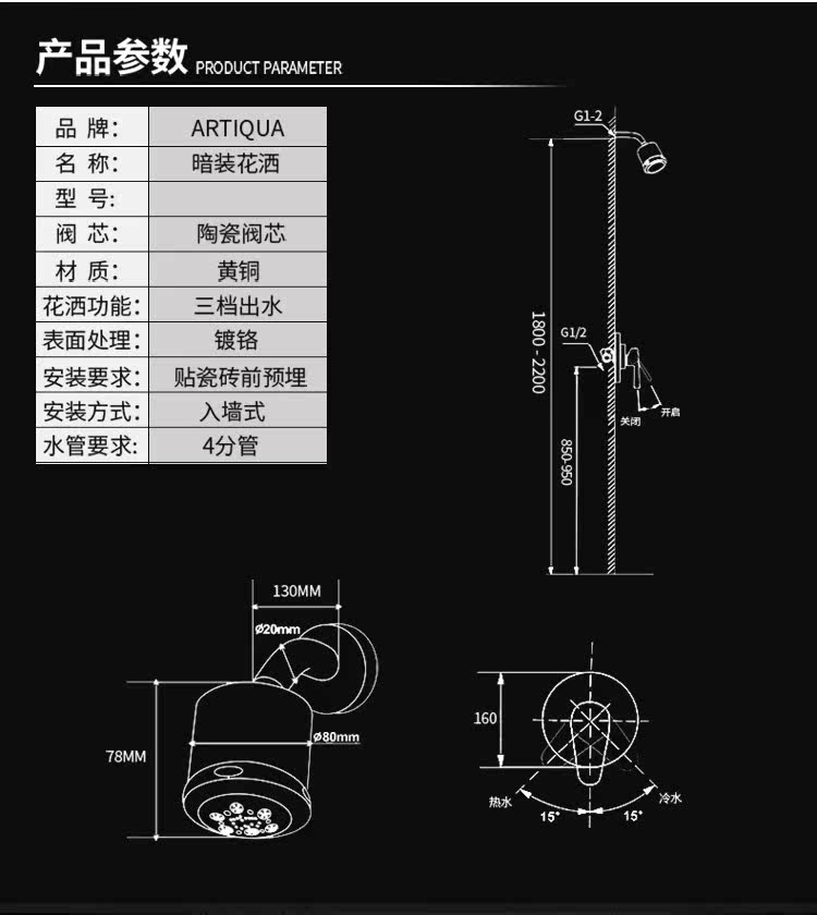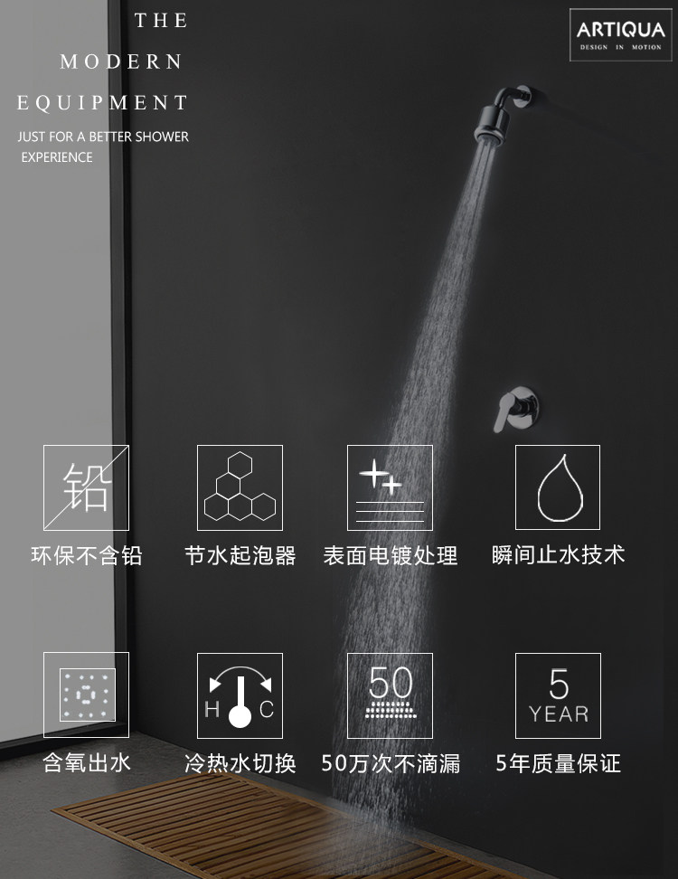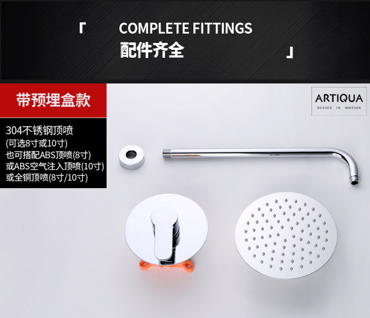Artiqua Concealed Wall-Mounted Showerhead Set, All-Copper Hot and Cold Showerhead Set for Hotel and Home Use