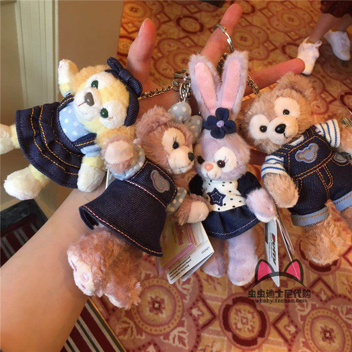 Hong Kong Disneyland Snowy Rose Stellalou Rabbit Denim Plush Keychain Bag Pendant