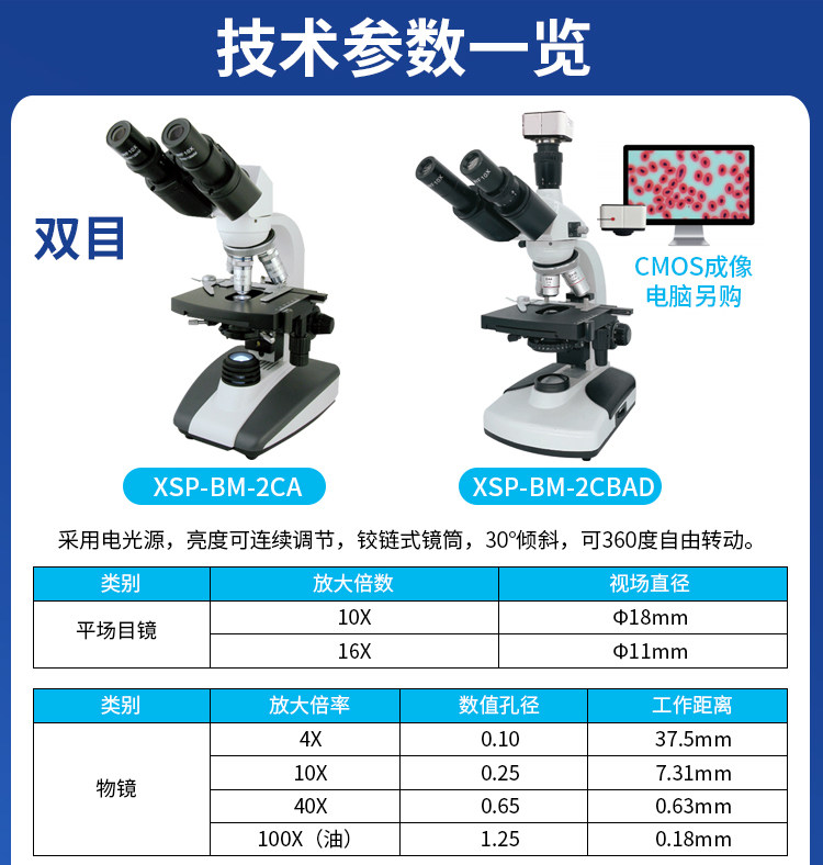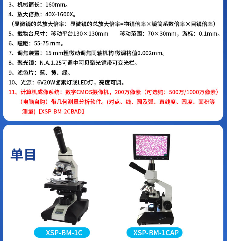 Shanghai Biem Xsp-Bm-2Ca Biological Microscope Laboratory Binocular 1600X 1000X Electric Light Source