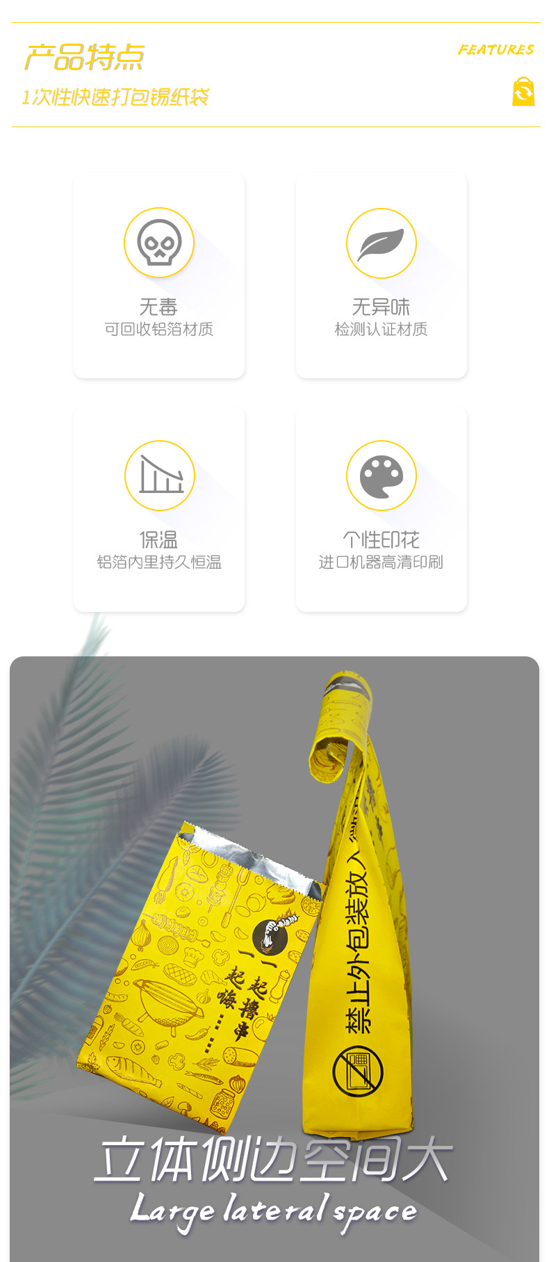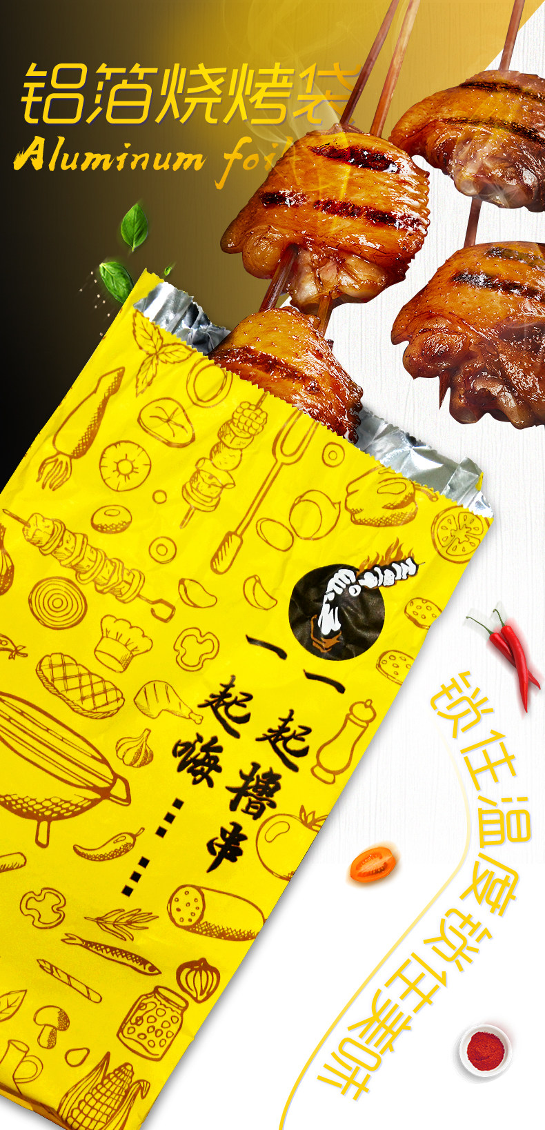 Bbq Takeaway Packaging Bag, Kraft Paper, Disposable Aluminum Foil, Cold-Insulating, Thickened, Large-Sized, Heat-Retaining, Oil-Proof Tin Foil Bag