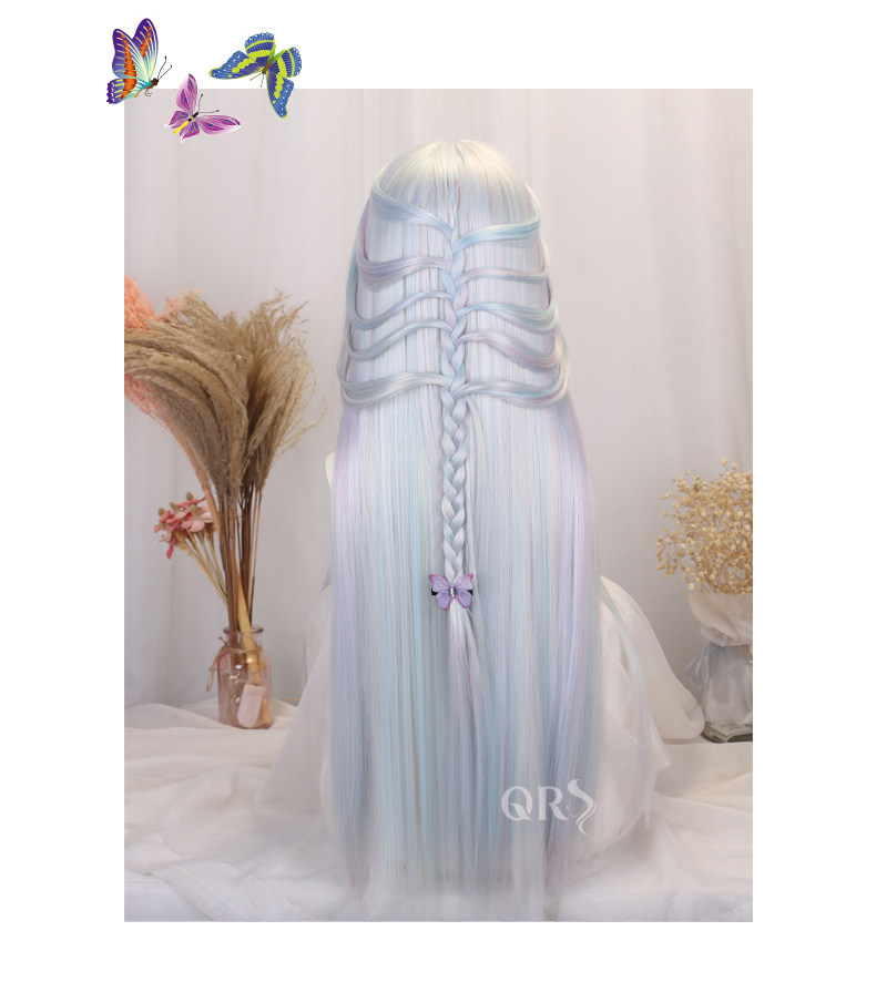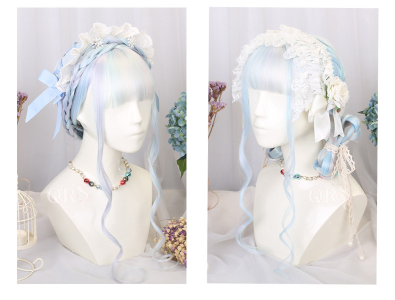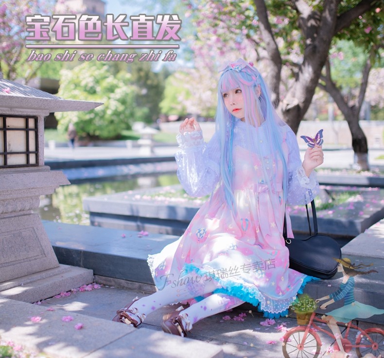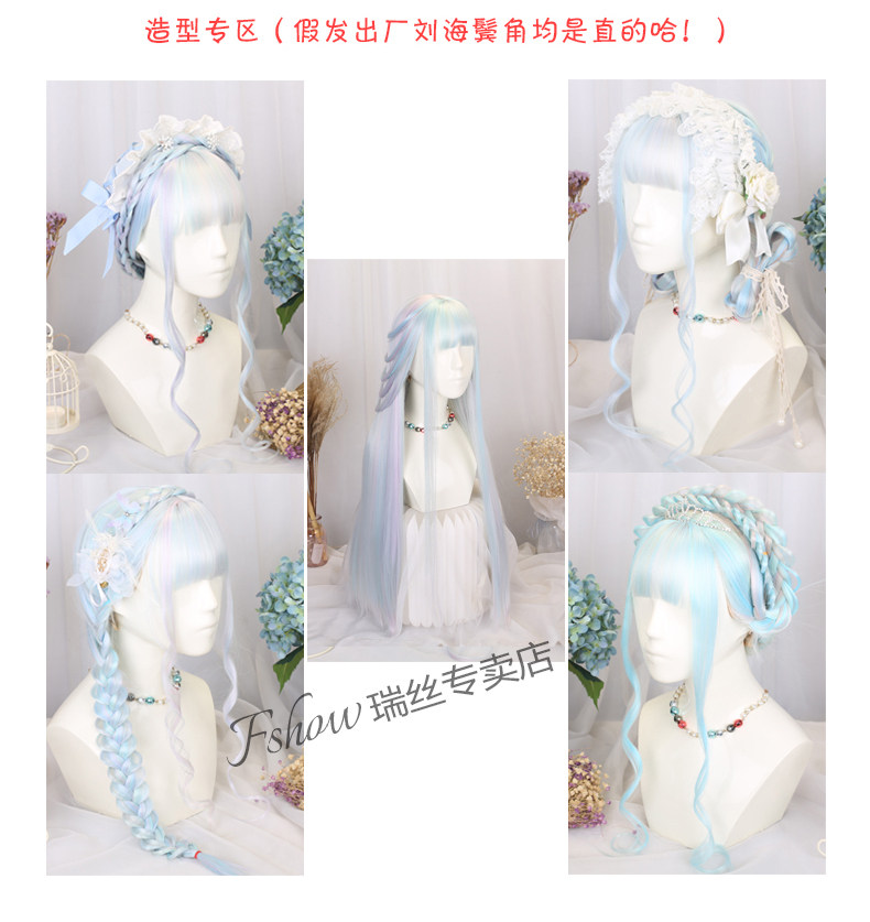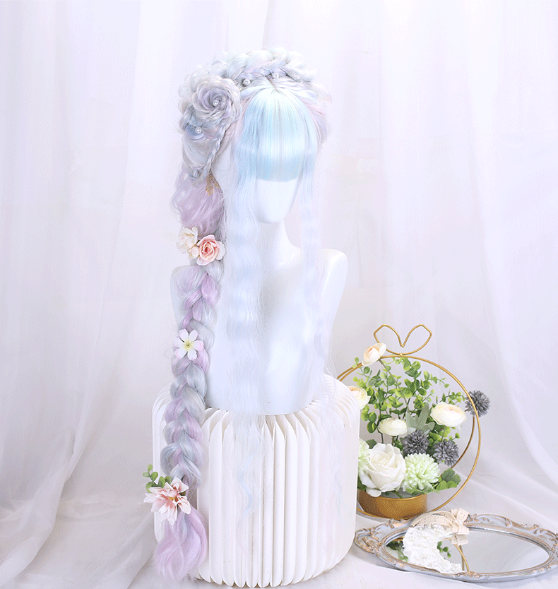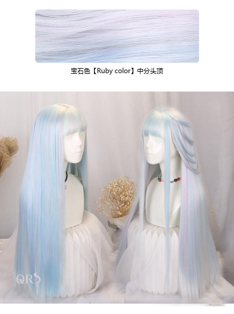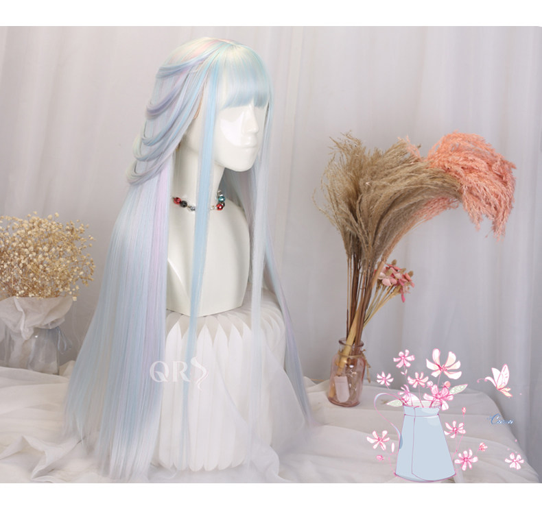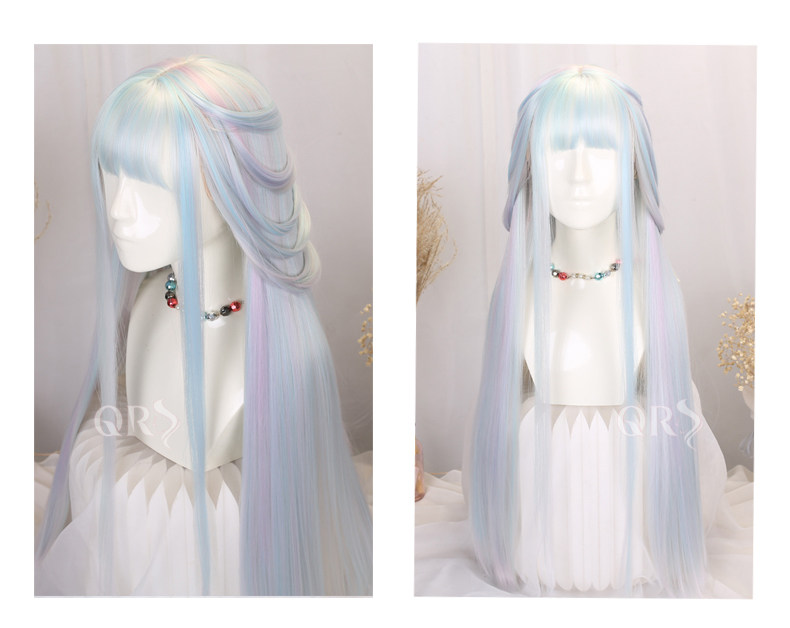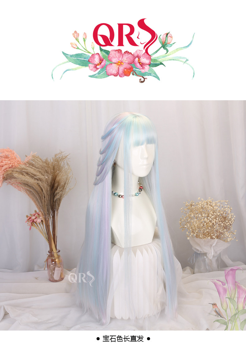 Lolita Princess Wig Girl Cosplay Gemstone Color Lolita Children's Colorful Rainbow Wig Gradient Long Hair Set