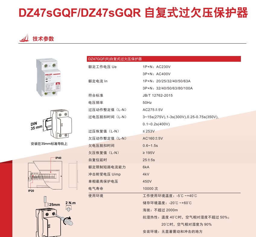 Delixi Dz47Sgqr63A Dual-Inlet Dual-Outlet Overvoltage and Undervoltage Protector for Household Circuit Breakers