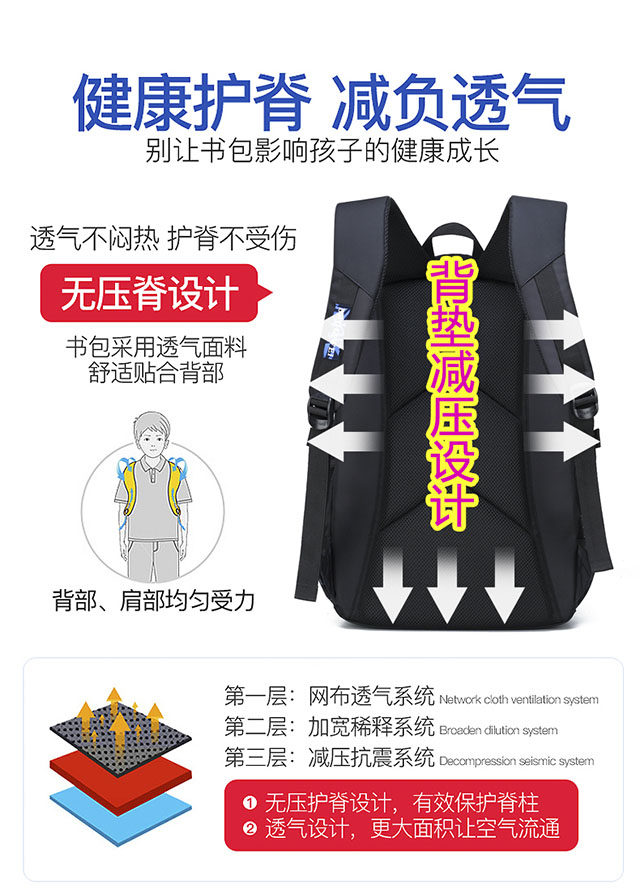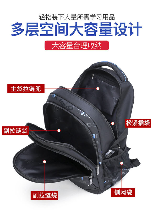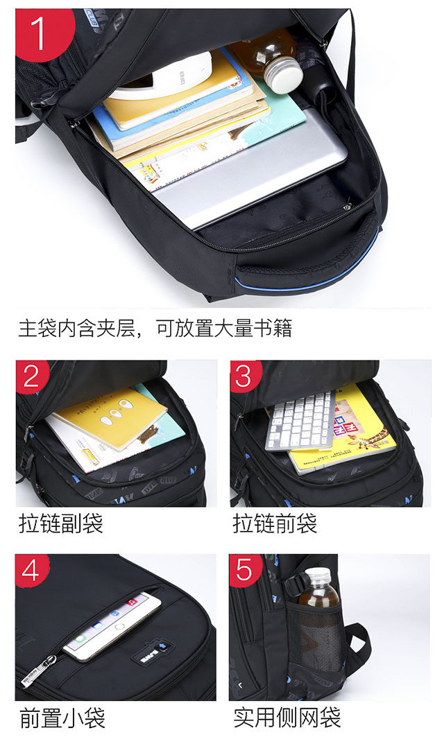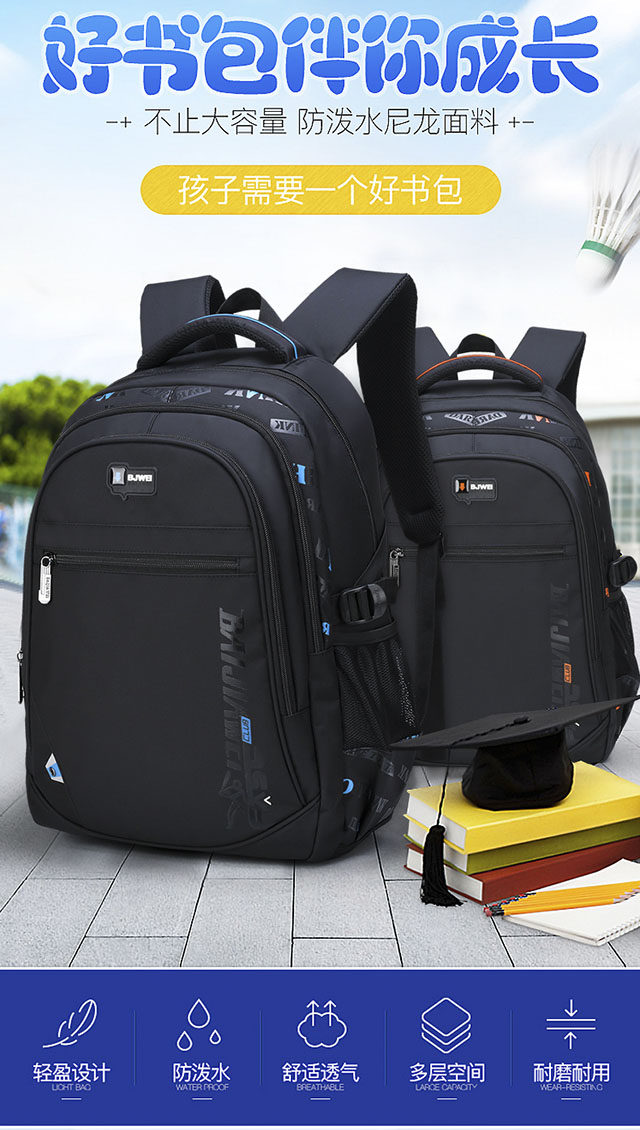 Junior High School Student Schoolbag, Male Middle School Student, Large Capacity, Fifth and Sixth Grade Boy, Older Child, Korean Version, Burden-Reducing, Spine-Protecting, Waterproof Backpack