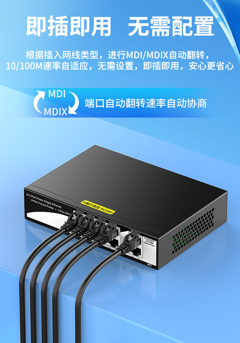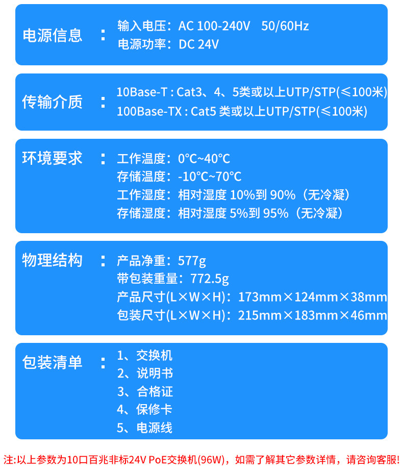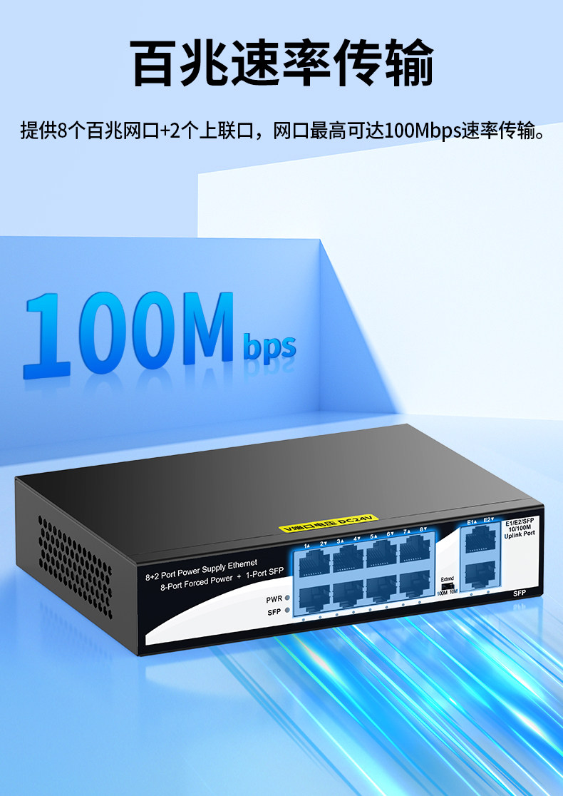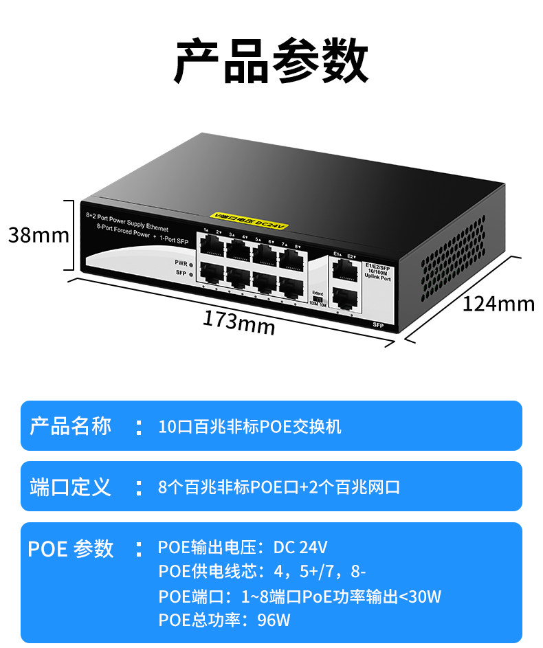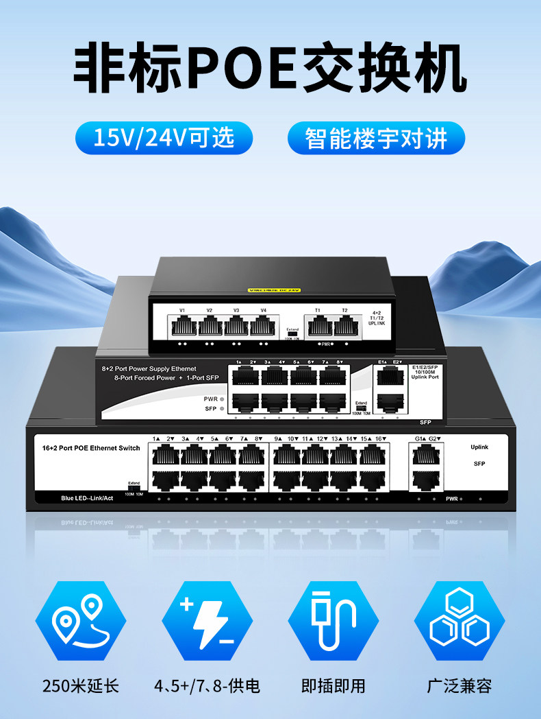 Color Classification 4+2 6-Port Non-Standard Poe 24V (52W),100m 4-Port Poe+2 100m Ports 15V,8+2 8-Port Non-Standard Poe 24V (96W),New 100Mbps 16-Port Poe+2 Gigabit Uplink Port 24V Desktop,100m 24-Port Poe+2 Gigabit Uplink+Gigabit Optical 24V