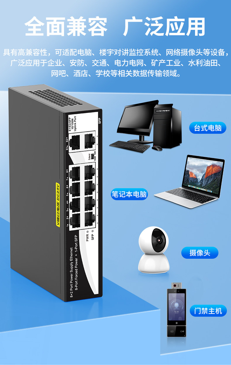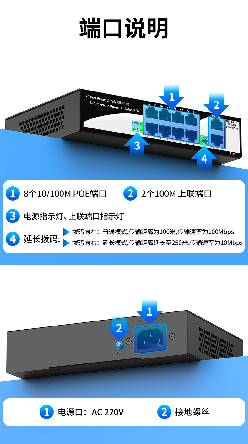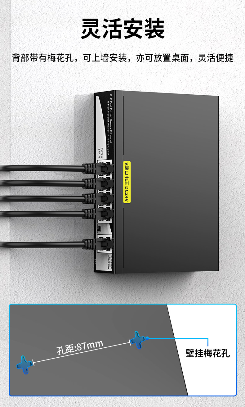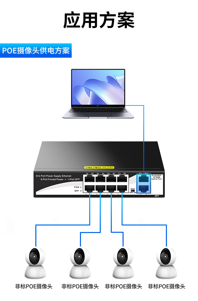 Color Classification 4+2 6-Port Non-Standard Poe 24V (52W),100m 4-Port Poe+2 100m Ports 15V,8+2 8-Port Non-Standard Poe 24V (96W),New 100Mbps 16-Port Poe+2 Gigabit Uplink Port 24V Desktop,100m 24-Port Poe+2 Gigabit Uplink+Gigabit Optical 24V