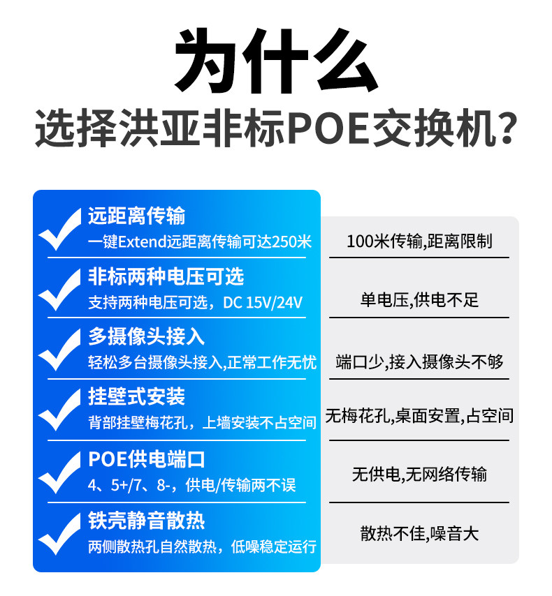 Hongya Vision 4-Port 8-Port 16-Port 24-Port Non-Standard Poe Power Supply Switch, 100m/1000m, 12V 15V 48V 24V, Suitable for Poe Cameras, Wireless Aps, Building Intercoms