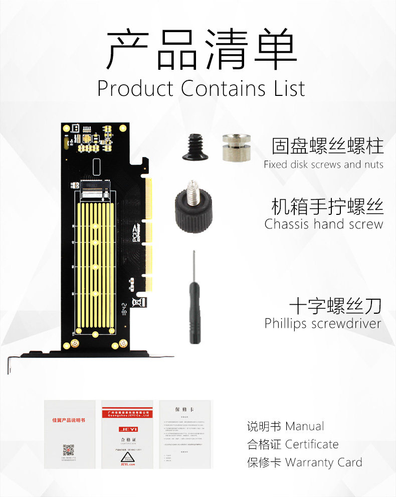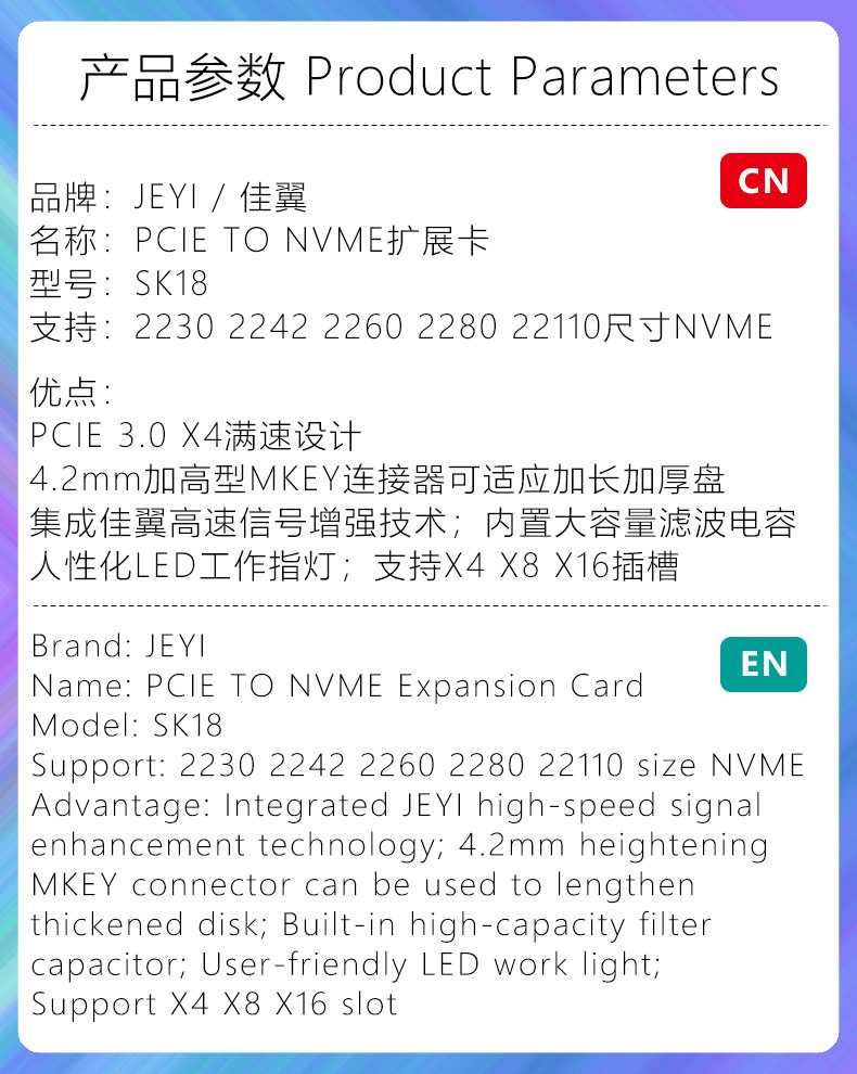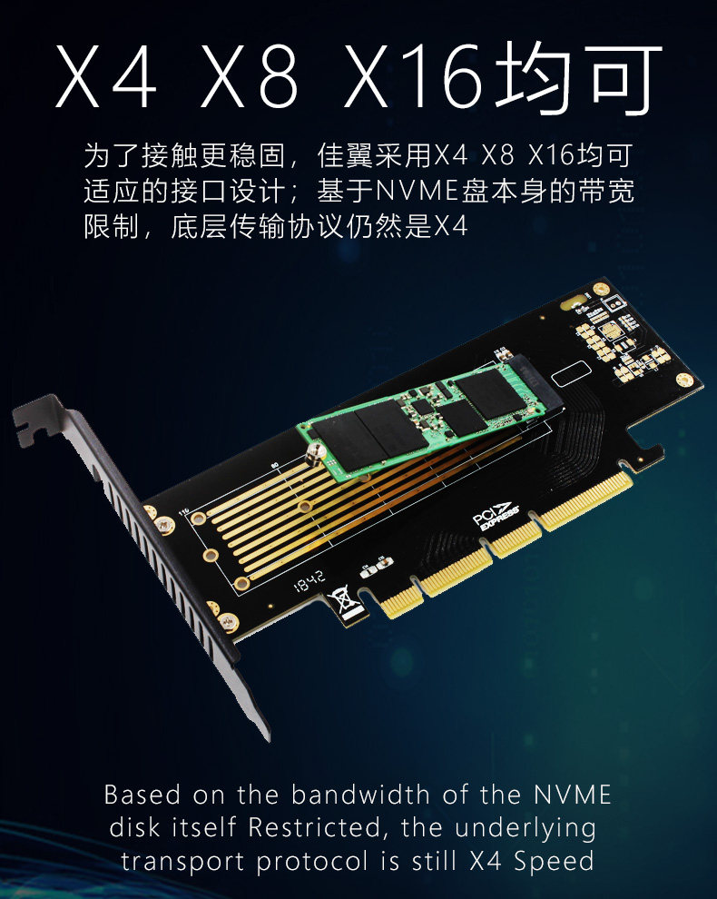 Jiayi Sk18 Nvme Adapter Card M.2 Expansion Card Nvme to Pcie X4 X16 M.3 Supports 22110