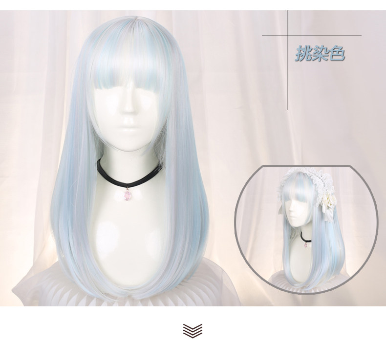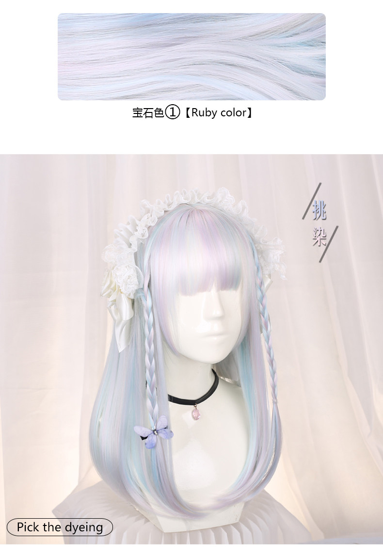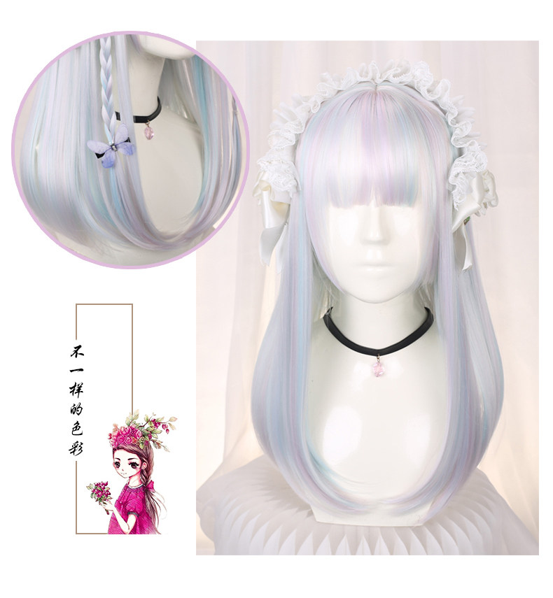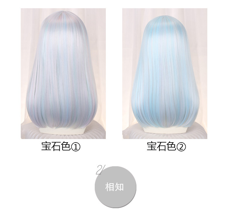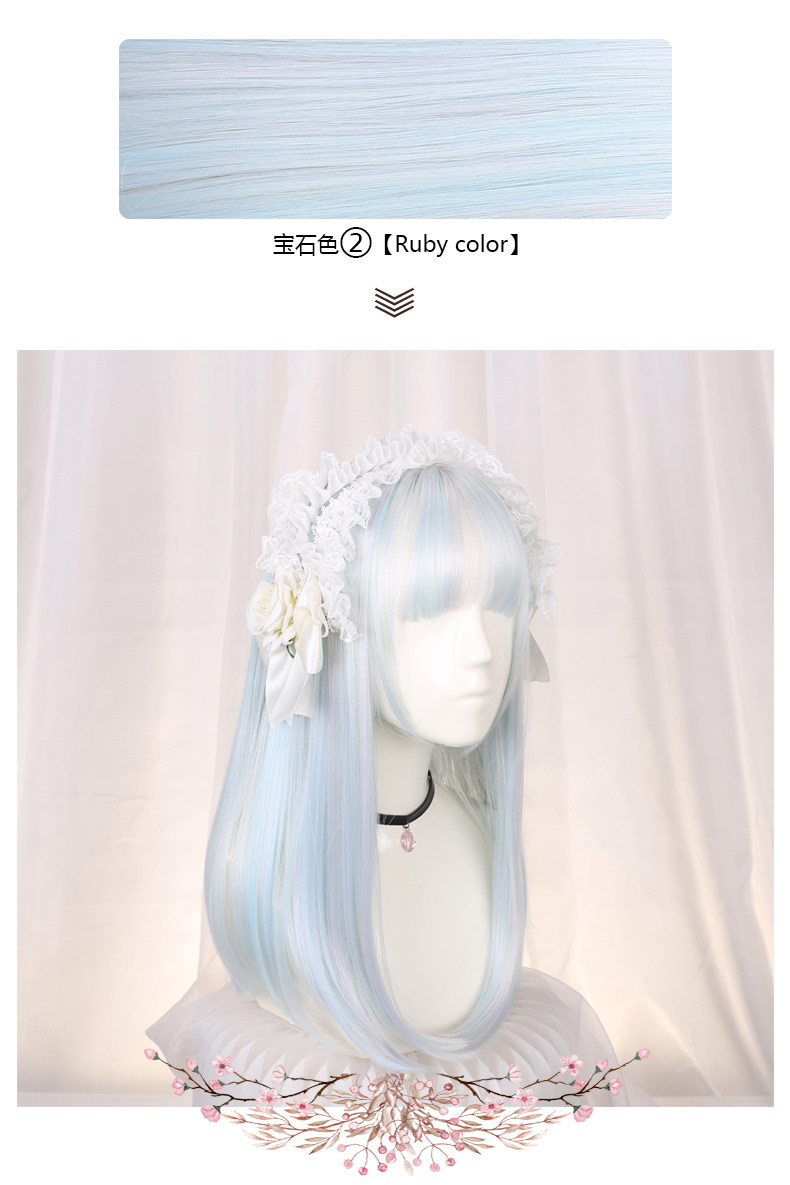 Japanese-Style Gradient Gemstone Color Gothic Wig for Women, Medium-Length Hair, Lolita Cute Princess Short Bob Haircut