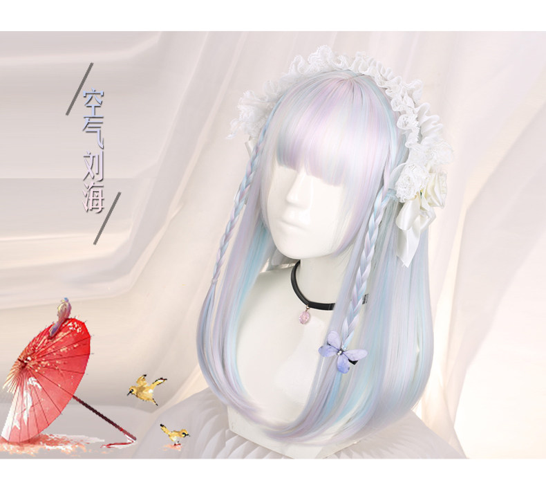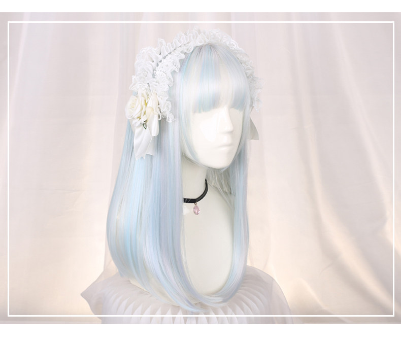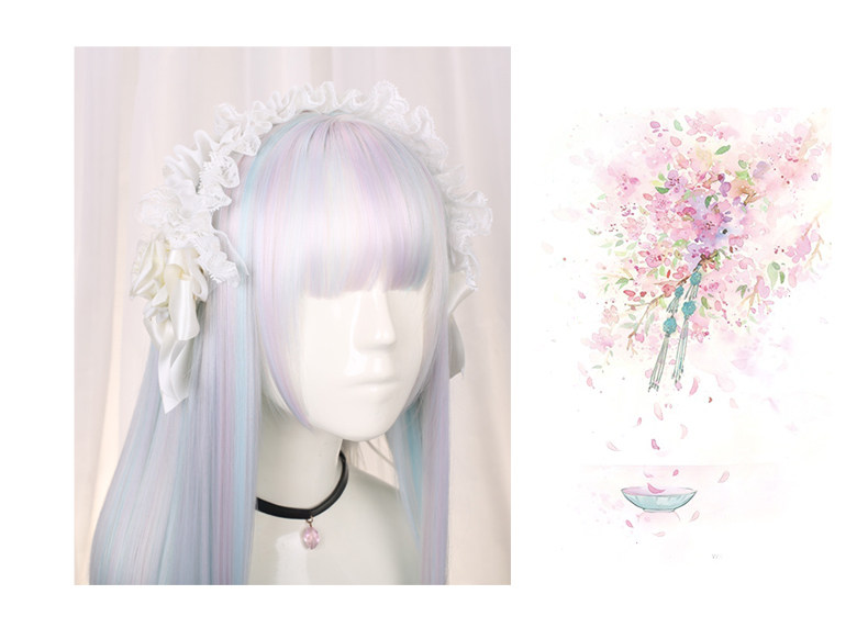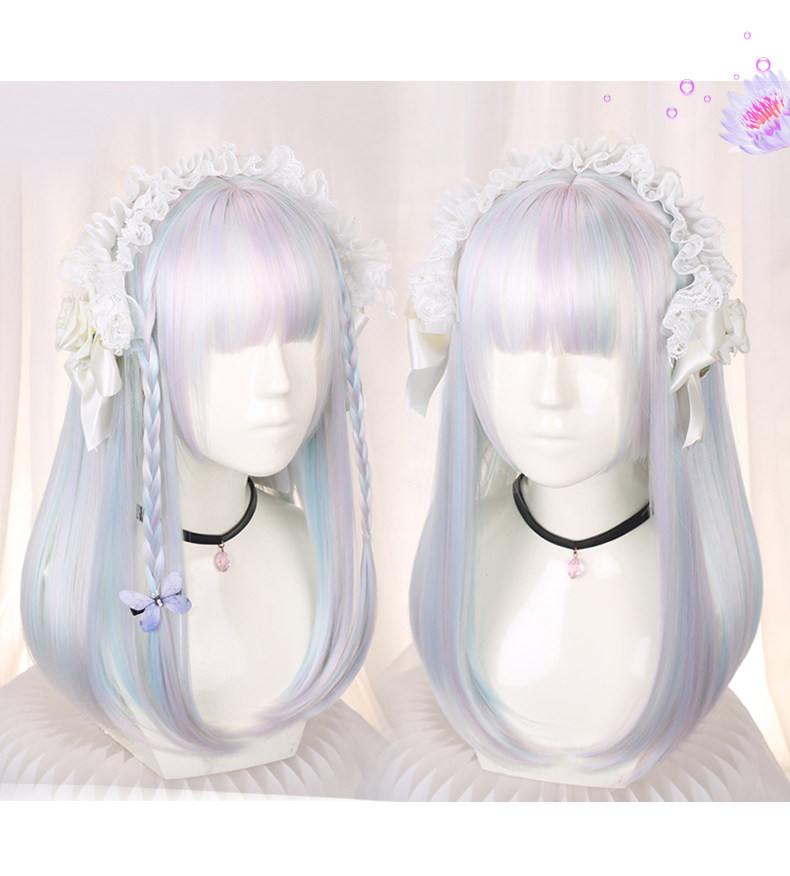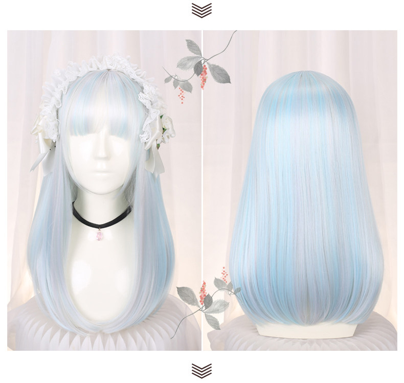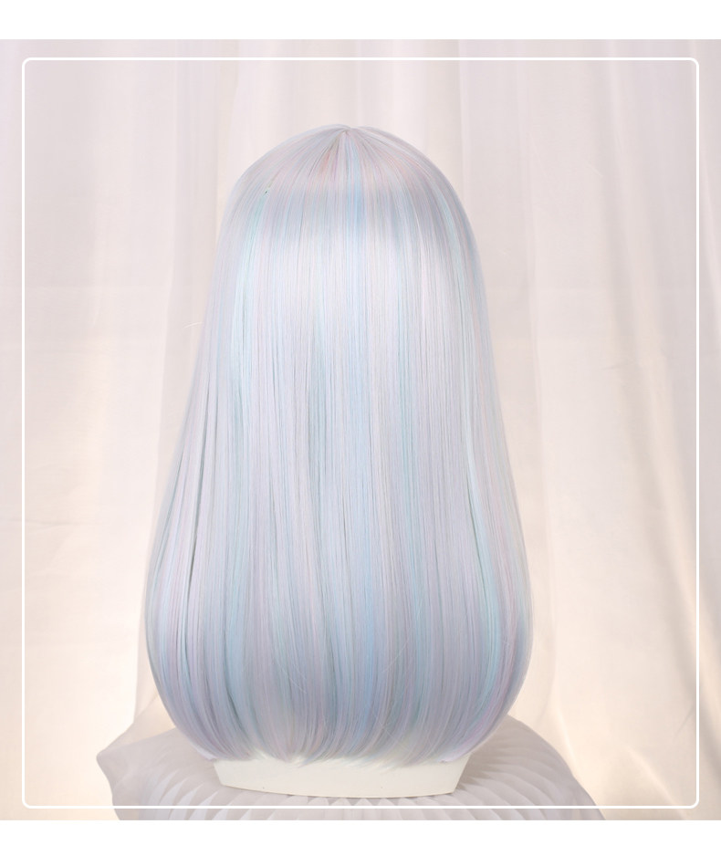 Japanese-Style Gradient Gemstone Color Gothic Wig for Women, Medium-Length Hair, Lolita Cute Princess Short Bob Haircut
