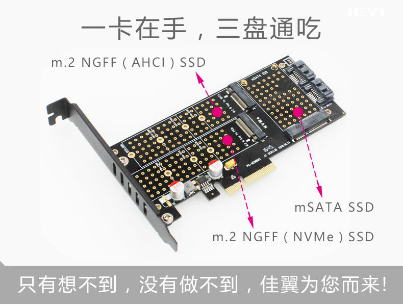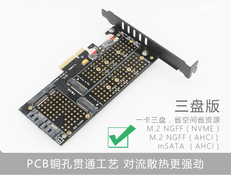 Jiayi Sk16 M.2 Nvme Ngff Pci-E3.0 X4 Adapter Card B+M Key Msata Three-Drive Version